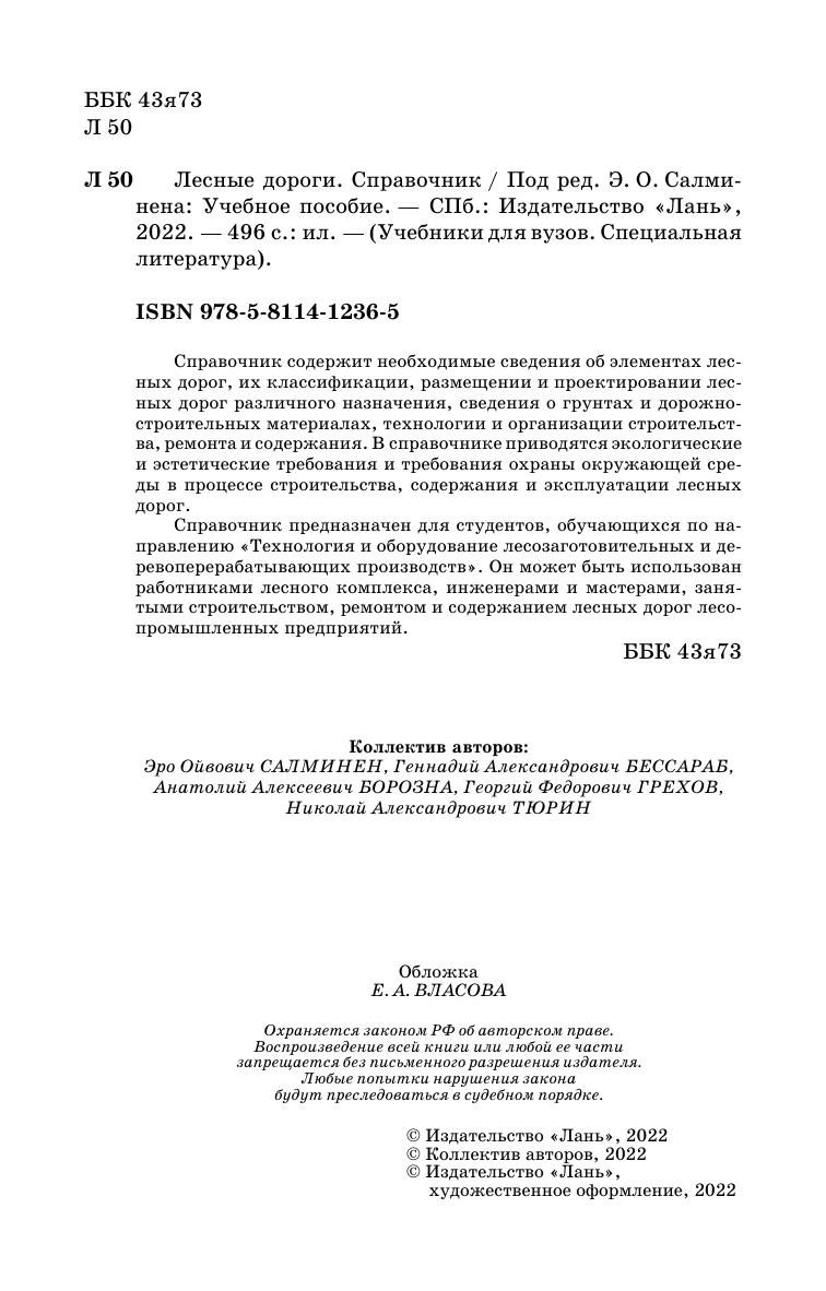 Справочник содержит необходимые сведения об элементах лесных дорог, их классификации, размещении и проектировании лесных дорог различного назначения, сведения о грунтах и дорожно-строительных материалах, технологии и организации строительства, ремонта и содержания. В справочнике приводятся экологические и эстетические требования и требования охраны окружающей среды в процессе строительства, содержания и эксплуатации лесных дорог. Справочник предназначен для студентов, обучающихся по направлению «Технология и оборудование лесозаготовительных и деревоперерабатывающих производств». Он может быть использован работниками лесного комплекса, инженерами и мастерами, занятыми строительством, ремонтом и содержанием лесных дорог лесопромышленных предприятий.