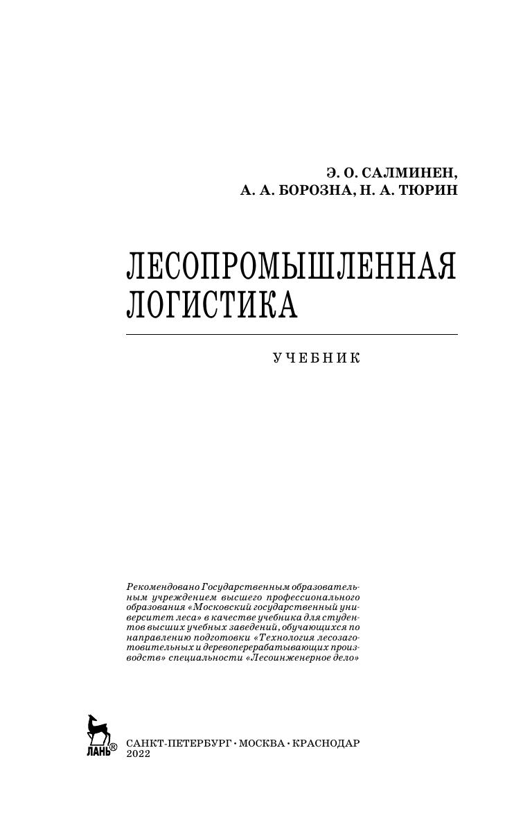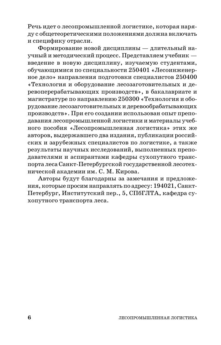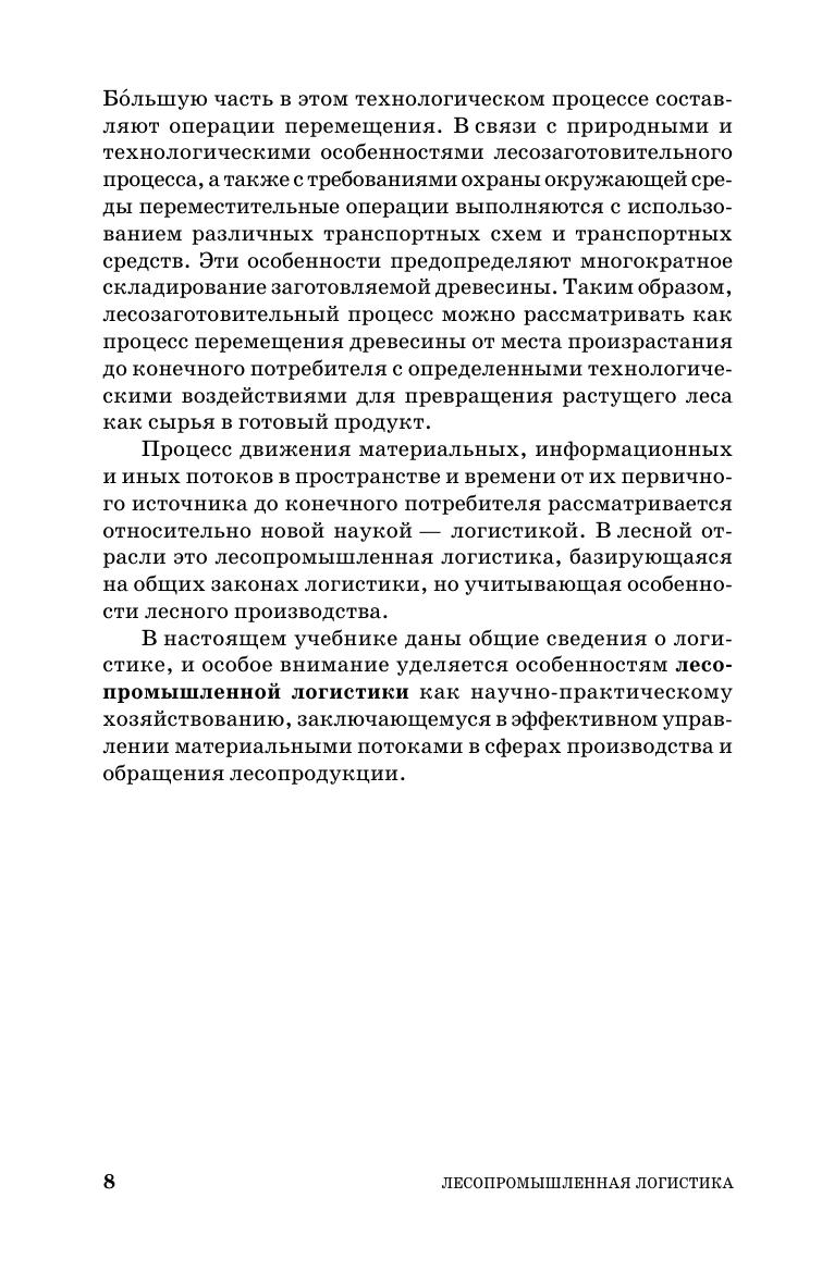В учебнике излагаются теоретические основы новой научной и учебной дисциплины — лесопромышленной логистики. Рассмотрены основные понятия, концепция, взаимодействие составляющих лесопромышленной логистики — информационное обеспечение, транспорт, управление запасами, логистика международных перевозок, понятие о таможенной логистике.