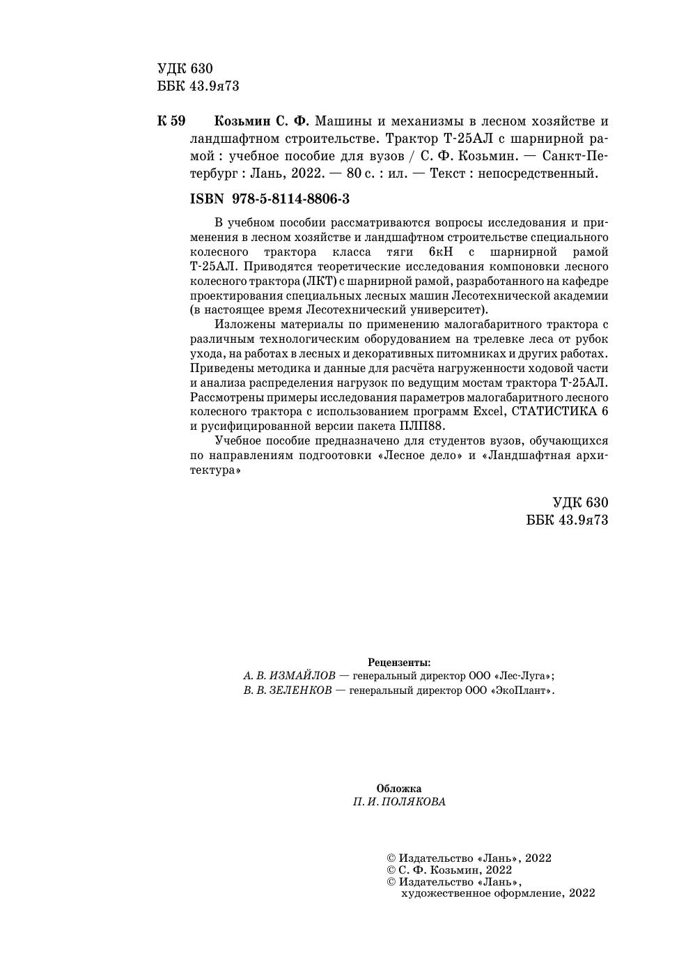 В учебном пособии рассматриваются вопросы исследования и применения в лесном хозяйстве и ландшафтном строительстве специального колесного трактора класса тяги 6кН с шарнирной рамой