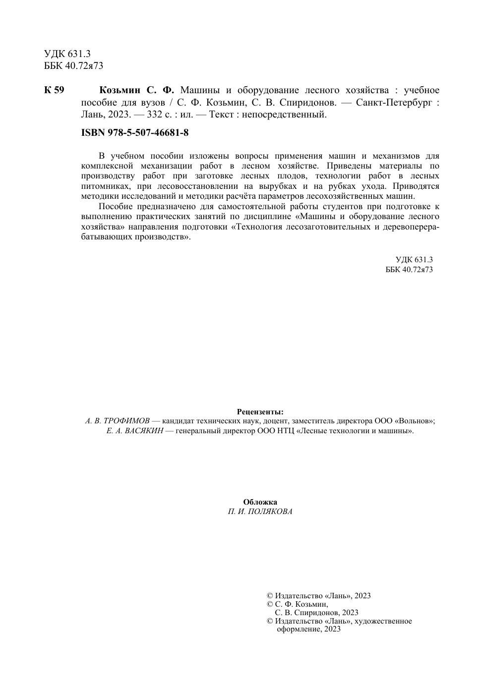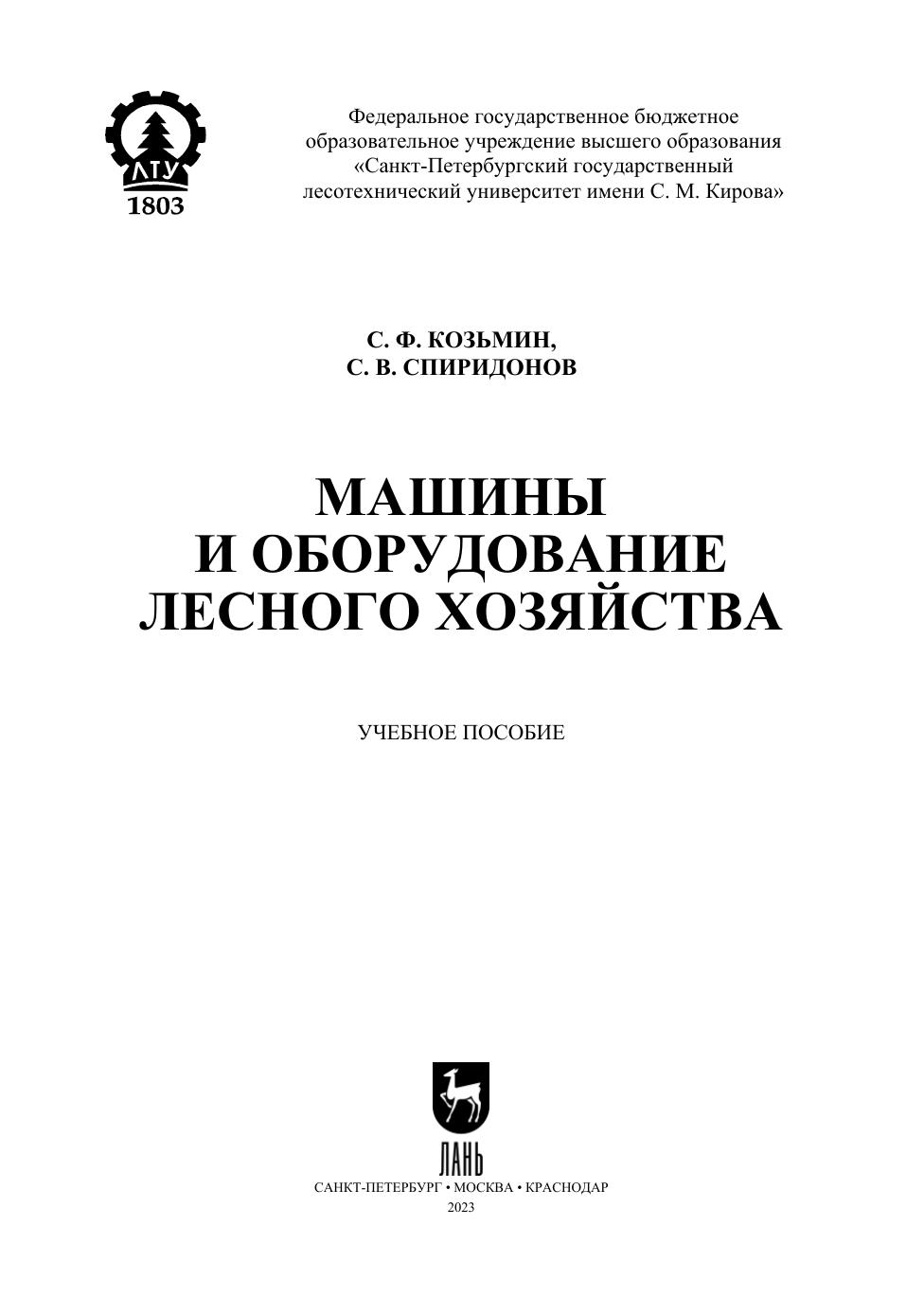В учебном пособии изложены вопросы применения машин и механизмов для комплексной механизации работ в лесном хозяйстве. Приведены материалы по производству работ при заготовке лесных плодов, технологии работ в лесных питомниках, при лесовосстановлении на вырубках и на рубках ухода. Приводятся методики исследований и методики расчёта параметров лесохозяйственных машин. Пособие предназначено для самостоятельной работы студентов при подготовке к выполнению практических занятий по дисциплине «Машины и оборудование лесного хозяйства» направления подготовки «Технология лесозаготовительных и деревоперерабатывающих производств».