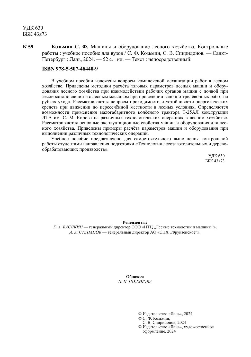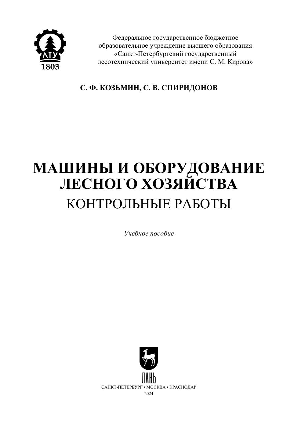 В учебном пособии изложены вопросы комплексной механизации работ в лесном хозяйстве. Приведены методики расчёта тяговых параметров лесных машин и оборудования лесного хозяйства при взаимодействии рабочих органов машин с почвой при лесовосстановлении и с лесным массивом при проведении валочно-трелёвочных работ на рубках ухода. Рассматриваются вопросы проходимости и устойчивости энергетических средств при движении по пересечённой местности в лесных условиях. Определяются возможности применения малогабаритного колёсного трактора Т-25АЛ конструкции ЛТА им. С. М. Кирова на различных технологических операциях в лесном хозяйстве. Рассматриваются основные эксплуатационные свойства машин и оборудования для лесного хозяйства. Приведены примеры расчёта параметров машин и оборудования при выполнении различных технологических операций. Учебное пособие предназначено для самостоятельного выполнения контрольной работы студентами направления подготовки «Технология лесозаготовительных и деревообрабатывающих производств».