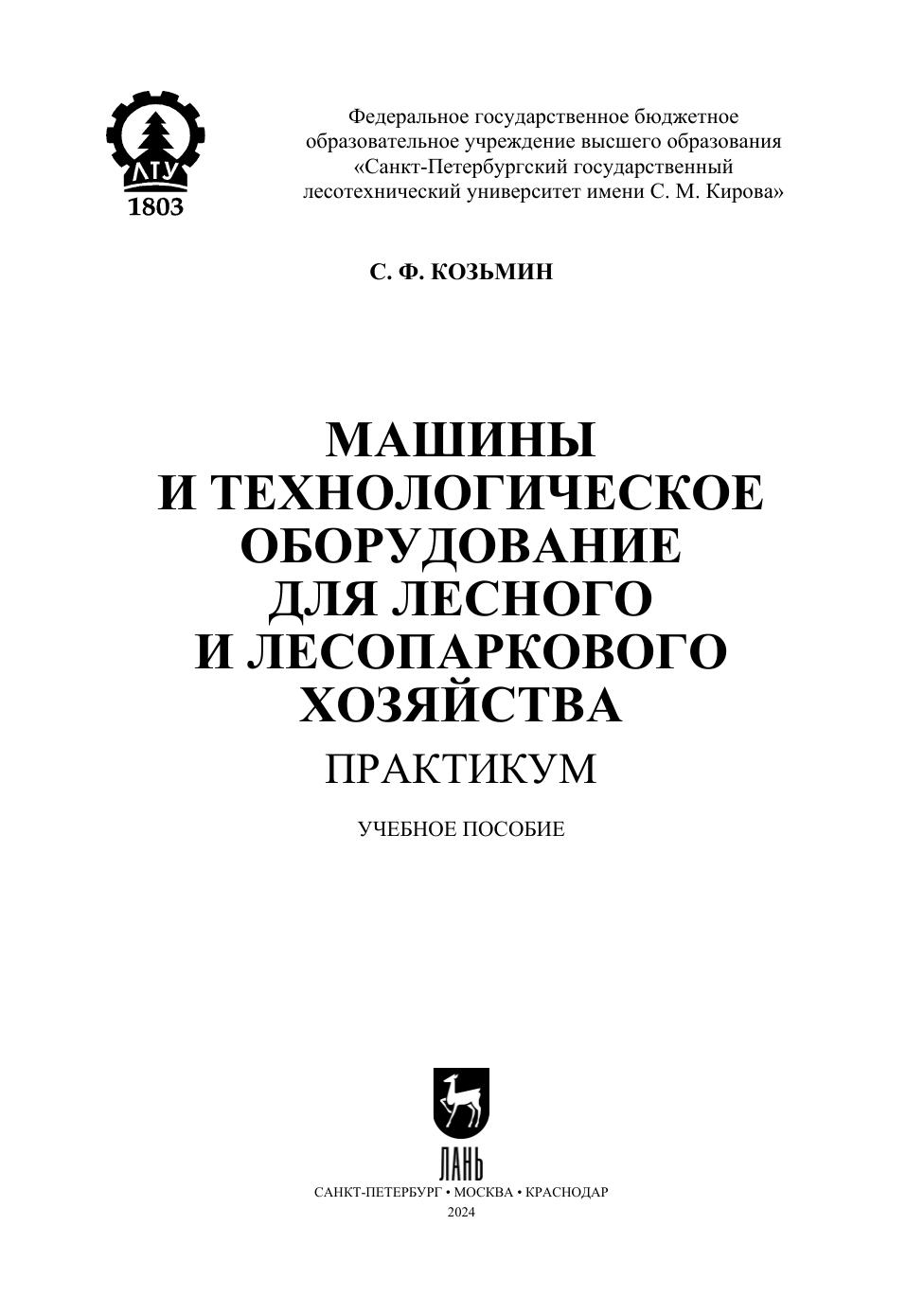 Машины и технологическое оборудование для лесного и лесопаркового хозяйства. Практикум