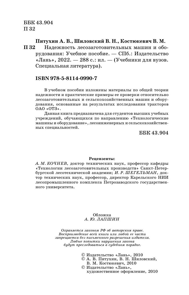 В учебном пособии изложены материалы по общей теории надежности и практические примеры ее проверки относительно лесозаготовительных и сельскохозяйственных машин и оборудования, основанные на результатах исследования тракторов ОАО «ОТЗ». Данная книга предназначена для студентов высших учебных учреждений, обучающихся по направлению «Технологические машины и оборудование», лесоинженерных и сельскохозяйственных специальностей.
