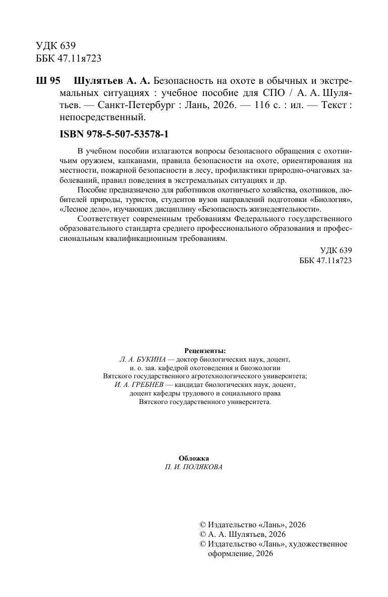 В учебном пособии излагаются вопросы безопасного обращения с охотничьим оружием, капканами, правила безопасности на охоте, ориентирования на местности, пожарной безопасности в лесу, профилактики природно-очаговых заболеваний, правил поведения в экстремальных ситуациях и др. Пособие предназначено для работников охотничьего хозяйства, охотников, любителей природы, туристов, студентов профильных колледжей и техникумов. Соответствует современным требованиям Федерального государственного образовательного стандарта среднего профессионального образования и профессиональным квалификационным требованиям.