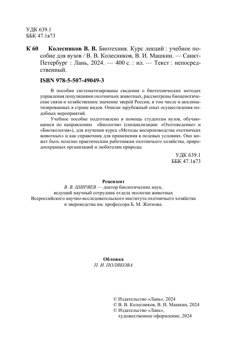 В пособии систематизированы сведения о биотехнических методах управления популяциями охотничьих животных, рассмотрены биоценотические связи и хозяйственное значение зверей России, в том числе и акклиматизированных в стране видов. Описан зарубежный опыт осуществления подобных мероприятий. Учебное пособие подготовлено в помощь студентам вузов, обучающимся по направлению «Биология» (специализации: «Охотоведение» и «Биоэкология»), для изучения курса «Методы воспроизводства охотничьих животных» и как справочник для применения в полевых условиях. Оно может быть полезно практическим работникам охотничьего хозяйства, природоохранных организаций и любителям природы.