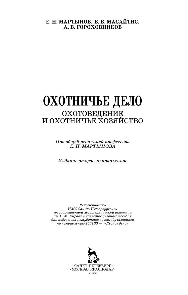 Книга включает теоретические основы охотоведения как научной дисциплины, а также практические вопросы охоты и охотничьего хозяйства России. Авторами рассмотрены история охоты и охотничьего хозяйства, государственный охотничий фонд и ресурсы охотничьих животных, биологические основы охотничьего хозяйства, влияние на охотничью фауну антропогенных факторов и практическое значение охотничьих животных. В книге рассмотрены состояние и проблемы организации охотничьего дела, охотоустройства, методология учета численности охотничьих животных, основы биотехнии, охраны фауны, также приведена детальная характеристика технических средств охоты и охотничьей продукции. Учебное пособие предназначено для студентов охотоведческих, лесохозяйственных профилей биологических, лесных и сельскохозяйственных направлений подготовки работников охотничьего хозяйства и смежных с ним хозяйственных отраслей, охотников, а также специалистов природоохранной сферы.