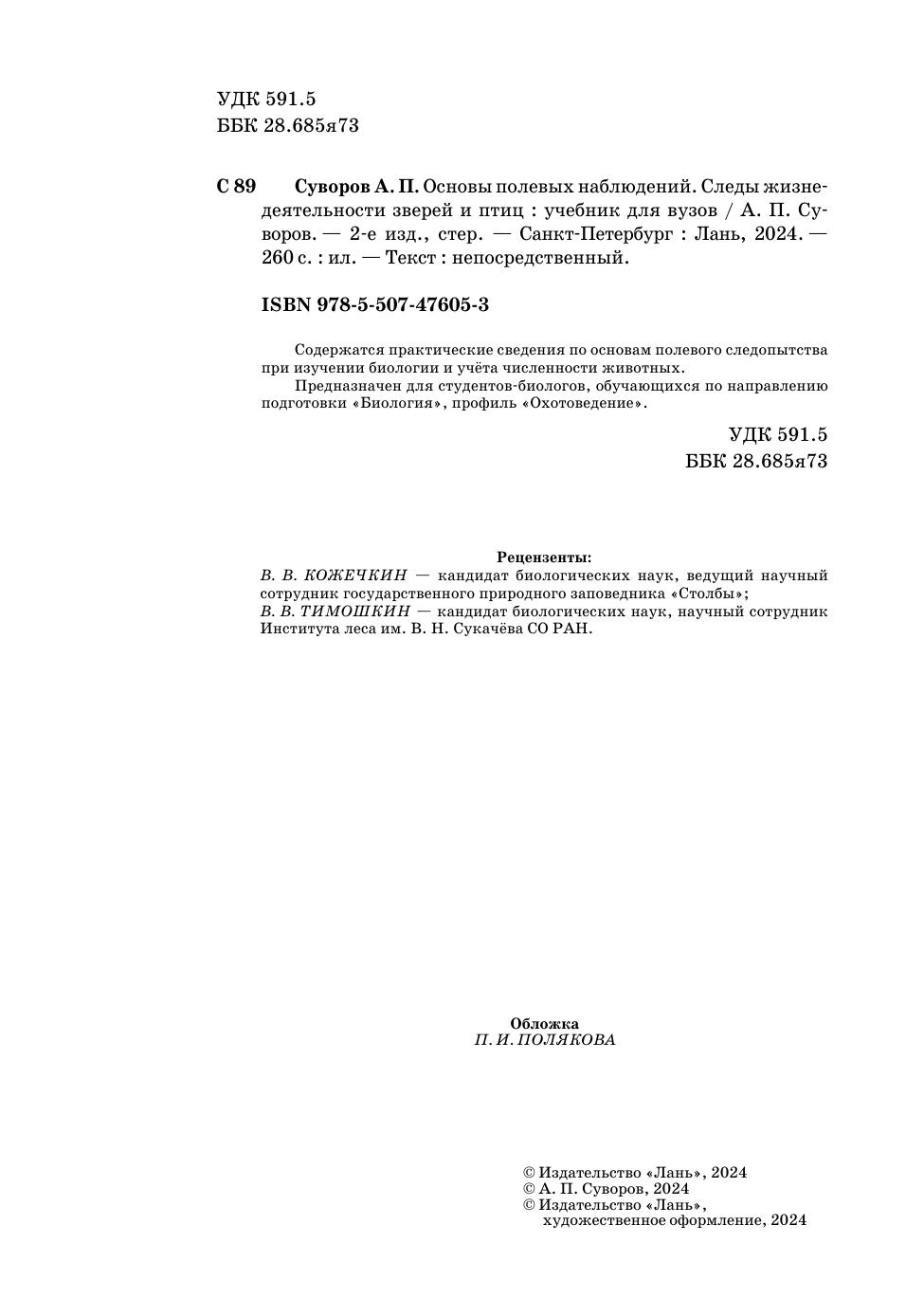 Содержатся практические сведения по основам полевого следопытства при изучении биологии и учёта численности животных. Предназначен для студентов-биологов, обучающихся по направлению подготовки «Биология», профиль «Охотоведение».