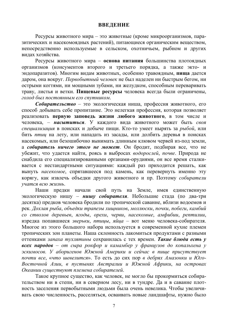 Настоящее учебное пособие включает в себя оценку ресурсов животных в соответствии с емкостью среды их обитания, экологические особенности динамики численности животных, характер влияния различных факторов среды на выживаемость животных. Приводятся методология мониторинга ресурсов, оценки качества среды обитания животных и методические аспекты составления и ведения региональных и видовых кадастров. Показывает принципы и критерии выявления и сохранения редких и исчезающих видов животных, анализ и оценку влияния на них факторов среды, методы их выявления. Приведены материалы по разнообразной продукции, получаемой от животных.