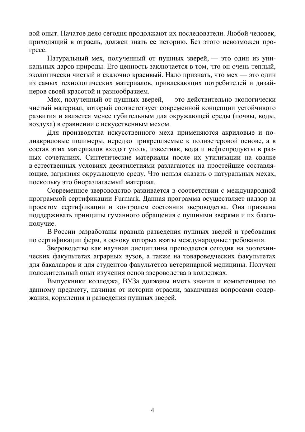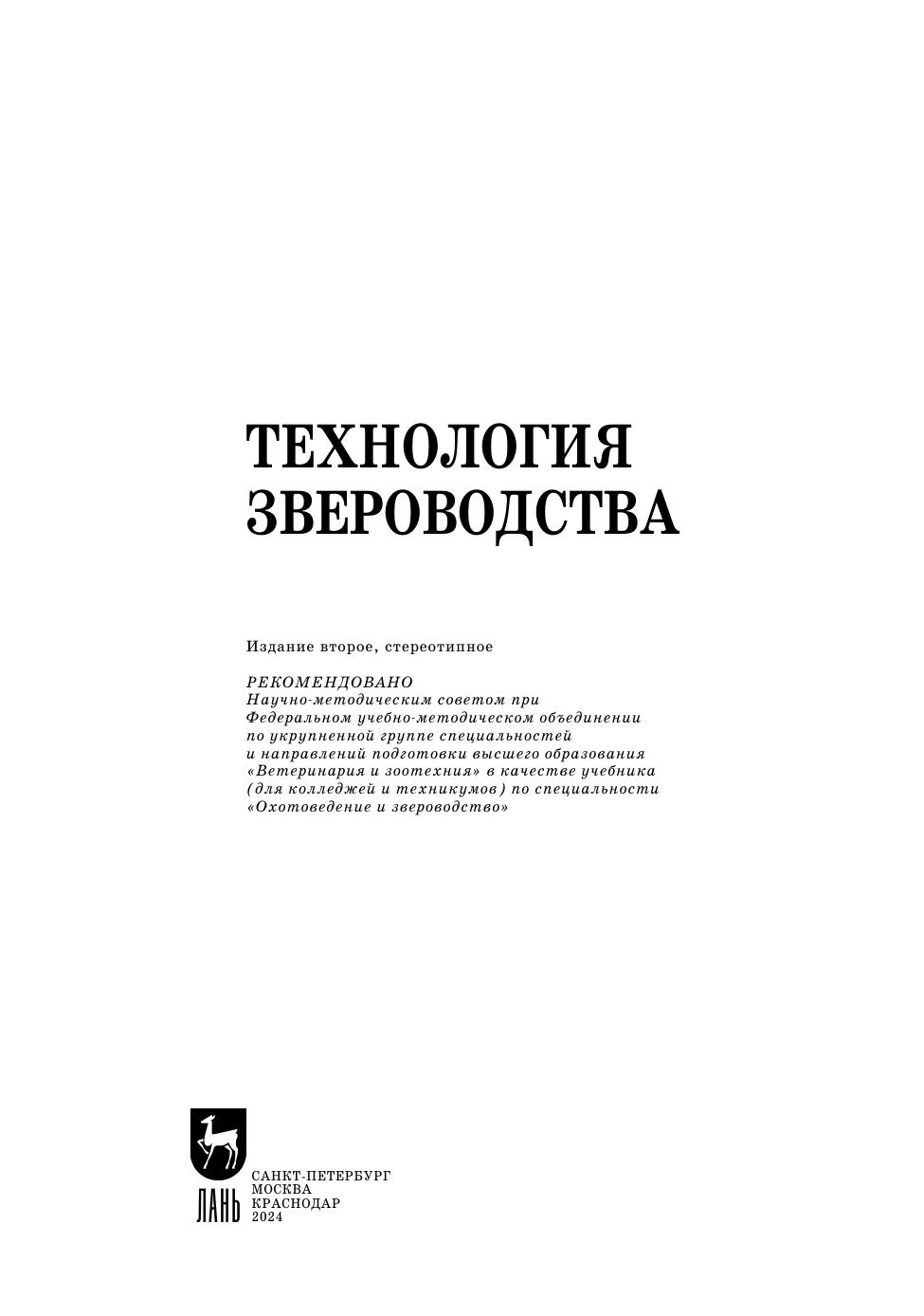 В учебнике рассмотрены биологические особенности хищных и растительноядных пушных зверей в природе, продукция звероводства, племенная работа в звероводстве, наследование окраса волосяного покрова пушных зверей, породы и типы пушных зверей, генетика их окраски, разведение, кормление пушных зверей. Учебник предназначен для студентов колледжей и техникумов, обучающихся по специальности «Охотоведение и звероводство».
