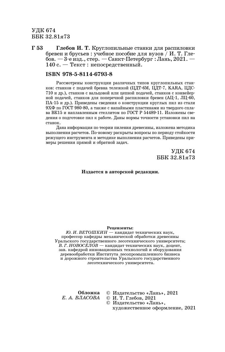 Рассмотрены конструкции различных типов круглопильных станков: станков с подачей бревна тележкой (ЦДТ-6М, ЦДТ-7, KARA, ЦДС-710 и др.), станков с вальцовой или цепной подачей, станков с конвейерной подачей, станков для поперечной распиловки бревен (АЦ-1, ЛЦ-60, ПА-15 и др.). Приведены сведения о конструкции круглых пил из стали 9ХФ по ГОСТ 980-80, а также с напайными пластинами из твердого сплава ВК15 и наплавленным стеллитом по ГОСТ Р 54489-11. Изложены сведения о подготовке пил к работе. Даны нормы точности установки пил на станок.