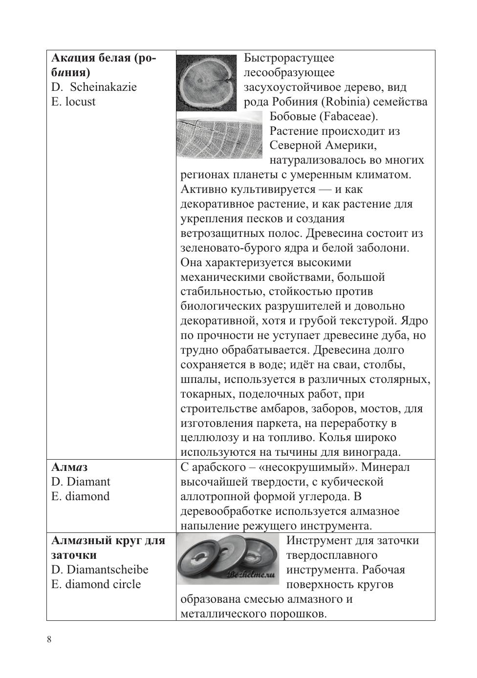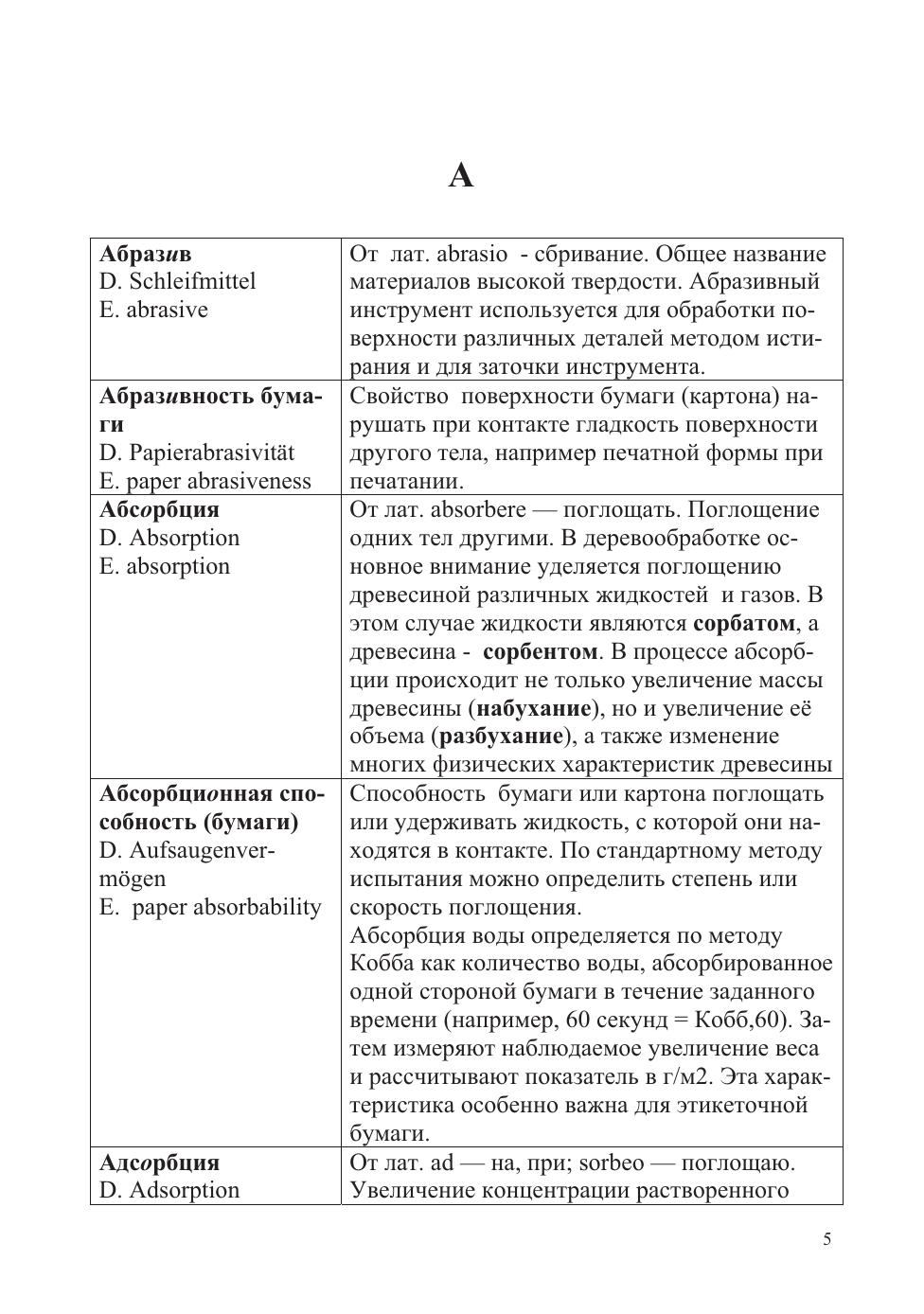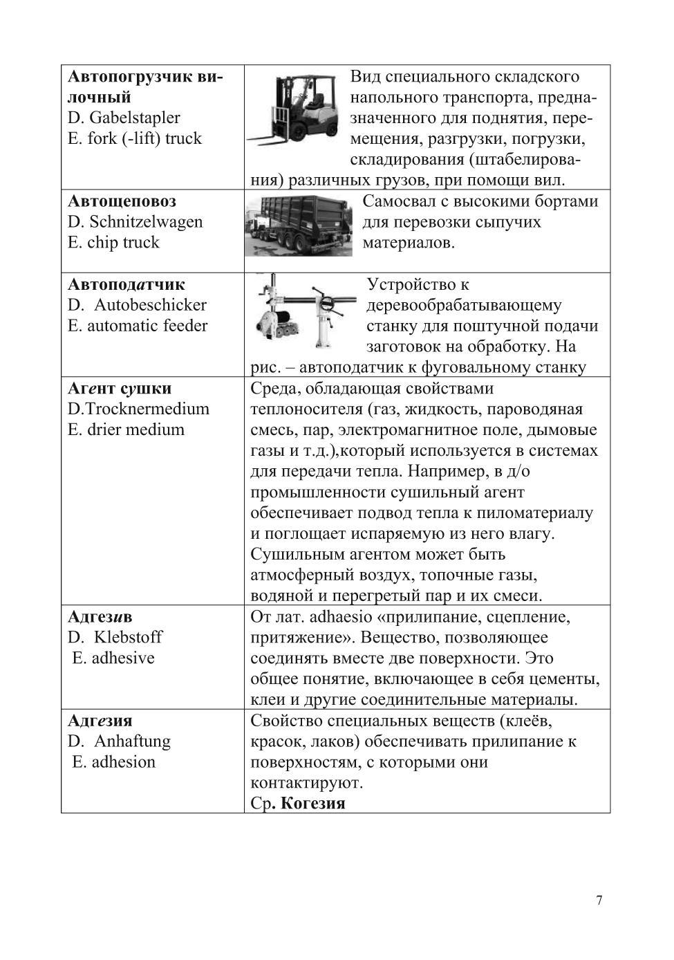 Словарь дает толкование примерно 2200 терминов, касающихся лесного хозяйства, древесиноведения, лесозаготовок и всей технологии лесопереработки, включающей в себя ЦБП, лесопиление, производства шпона и фанеры, производство древесных плит, столярномебельное и домостроительное производство.