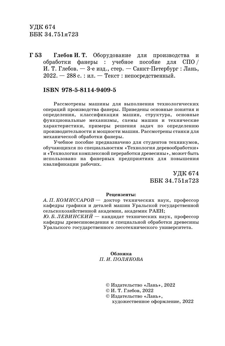 Рассмотрены машины для выполнения технологических операций производства фанеры. Приведены основные понятия и определения, классификация машин, структура, основные функциональные механизмы, схемы машин и технические характеристики, примеры решения задач по определению производительности и мощности машин. Рассмотрены станки для механической обработки фанеры.