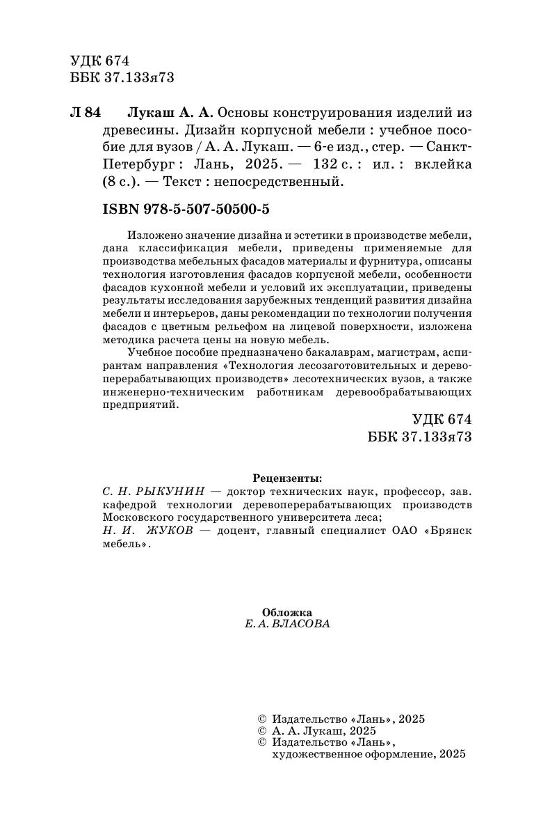 Изложено значение дизайна и эстетики в производстве мебели, дана классификация мебели, приведены применяемые для производства мебельных фасадов материалы и фурнитура, описана технология изготовления фасадов корпусной мебели, приведены особенности фасадов кухонной мебели и условий их эксплуатации, приведены результаты исследования зарубежных тенденции развития дизайна мебели и интерьеров, даны рекомендации по технологии получения фасадов с цветным рельефом на лицевой поверхности, изложена методика расчета цены на новую мебель. Учебное пособие предназначено бакалаврам, магистрам, аспирантам лесотехнических вузов, а также инженерно-техническим работникам деревообрабатывающих предприятий.