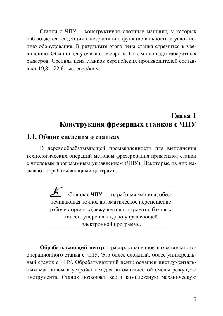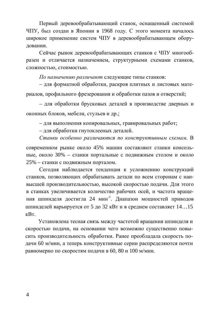 Рассмотрены конструкции простейших станков с ЧПУ для фрезерования древесины. Приведены классификация машин, структура и синтаксис управляющих программ, правила определения геометрических и технологических параметров процесса обработки деталей, правила интерполяции, коррекции и др. Даны рекомендации назначения режимов резания. Рассмотрены примеры составления управляющих программ. Соответствует современным требованиям Федерального государственного образовательного стандарта среднего профессионального образования и профессиональным квалификационным требованиям. Учебное пособие предназначено для студентов колледжей и техникумов, обучающихся по специальности «Технология деревообработки» и может быть использовано на деревообрабатывающих предприятиях для повышения квалификации рабочих.