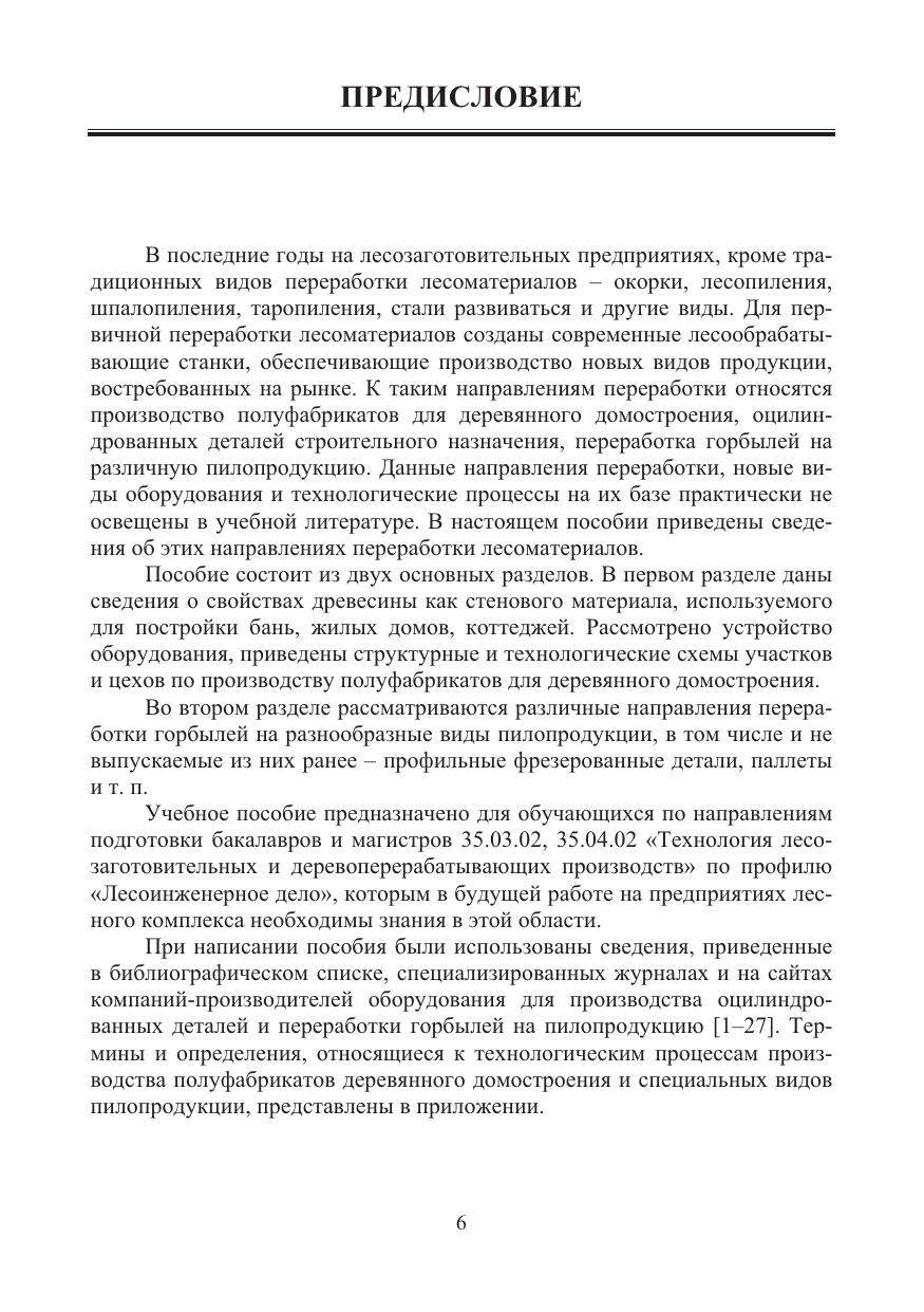 Даны сведения о свойствах древесины как стенового материала, используемого для постройки бань, жилых домов, коттеджей. Рассмотрено устройство оборудования, приведены структурные и технологические схемы участков и цехов по производству полуфабрикатов для деревянного домостроения. Представлены различные направления переработки горбылей на разнообразные виды пилопродукции, в том числе и не выпускаемые из них ранее – профильные фрезерованные детали, паллеты.