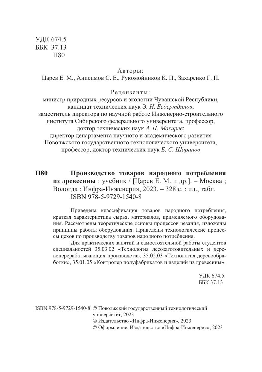 Для практических занятий и самостоятельной работы студентов специальностей 35.03.02 «Технология лесозаготовительных и деревоперерабатывающих производств», 35.02.03 «Технология деревообработки», 35.01.05 «Контролер полуфабрикатов и изделий из древесины».