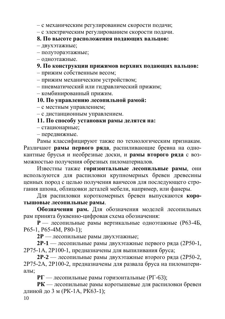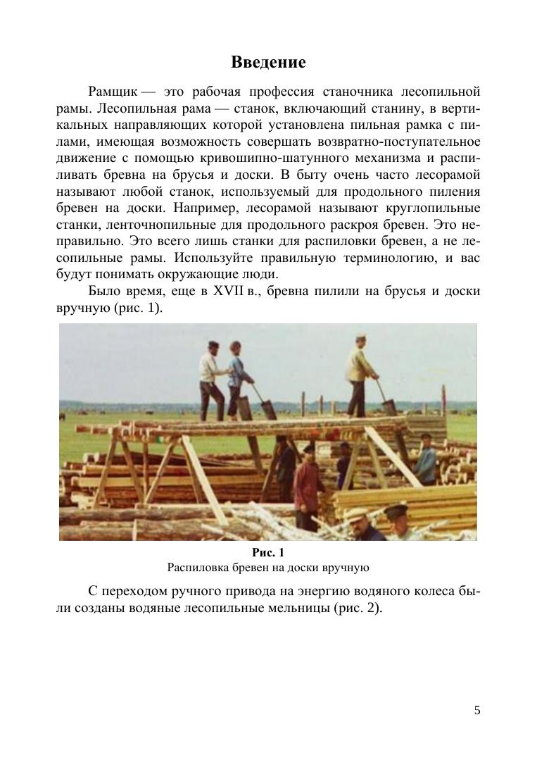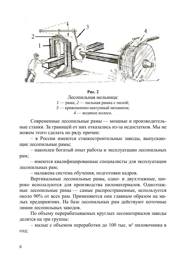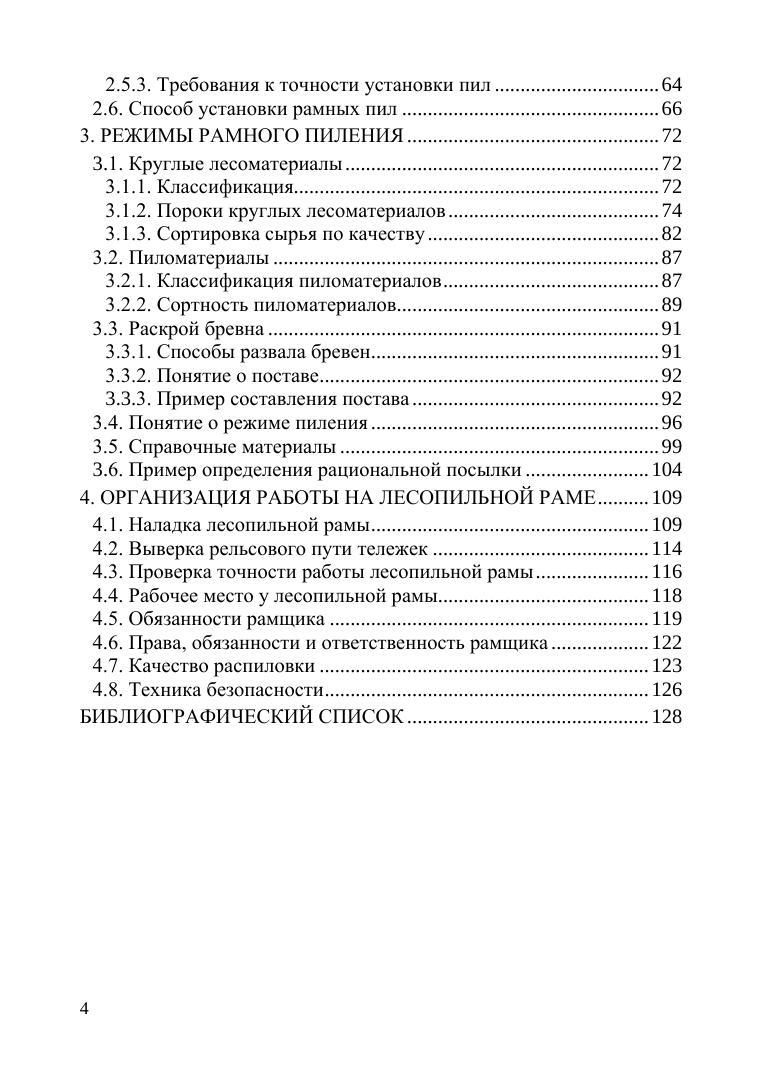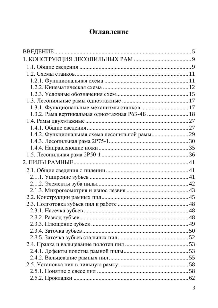 Книга состоит из четырех глав. В первой главе учебного пособия даны сведения о конструкции лесопильных рам: классификация, схемы функциональные, кинематические. Рассмотрены лесопильные рамы одноэтажные, функциональные механизмы рам. Рассмотрена конструкция лесопильной рамы Р63-4М. Показаны рамы двухэтажные, их функциональные механизмы. Конструкции рам 2Р75-1, 2Р50-1. Поддерживающие тележки, направляющие ножи. Во второй главе рассмотрены пилы рамные, их конструкция, размеры, подготовка к работе. Уширение пропила, насечка зубьев, заточка, вальцевание правка полотен с устранением дефектных мест. Дано понятие о свесе пил. Приведен способ установки пил в пильную рамку. В третьей главе приведены данные о круглых лесоматериалах: классификация, виды пороков древесины, сортность круглых лесоматериалов. Дана информация о пиломатериалах: виды, пороки, сортность пиломатериалов. Показаны способы получения пиломатериалов. Дано понятие о поставе. Приведен пример составления постава. Дано понятие о режиме пиления. В четвертой главе рассмотрена организация работы на лесопильной раме: наладка станка и около рамного оборудования, организация рабочего места, обязанности рамщика, причины образования технического брака и его устранение. Соответствует современным требованиям Федерального государственного образовательного стандарта среднего профессионального образования и профессиональным квалификационным требованиям. Учебное пособие предназначено для рабочих, занятых повышением квалификации на производстве по профессии 17771 (ЕТКС) «Рамщик», а также студентов ссузов, обучающихся в соответствии с профстандартом «Оператор лесопильных линий».