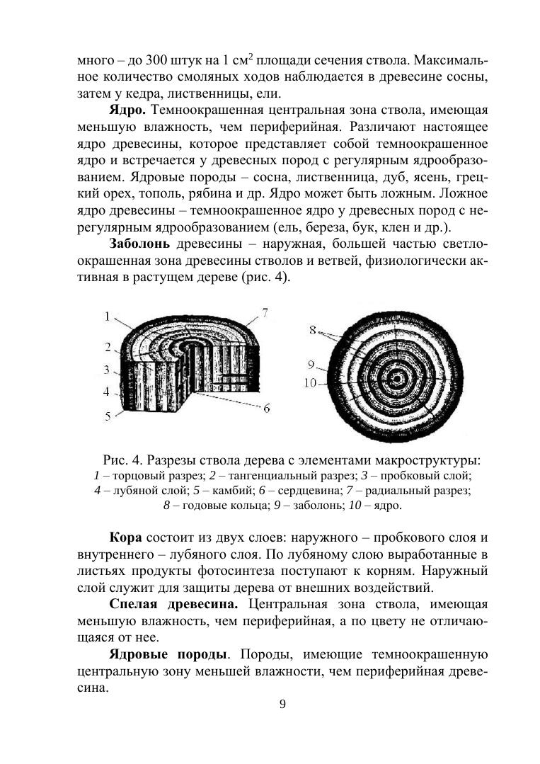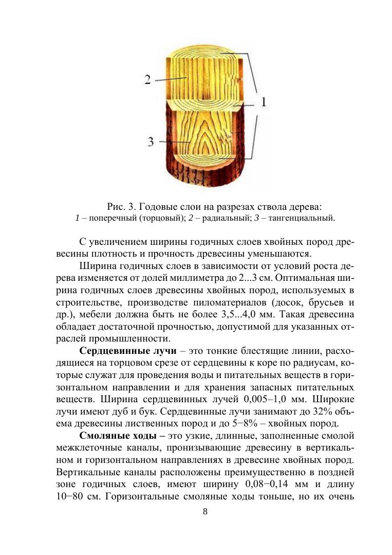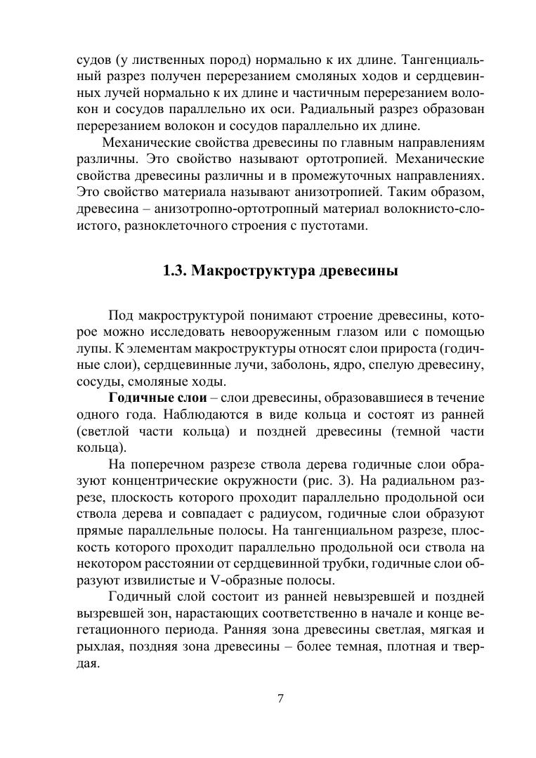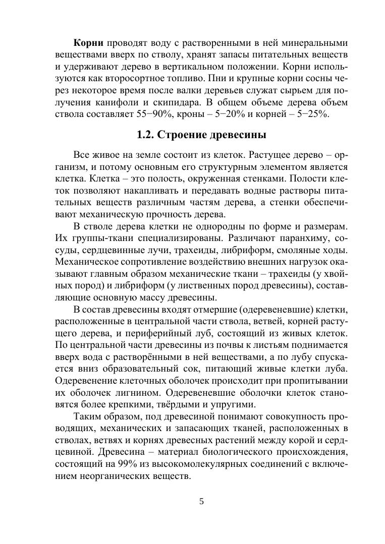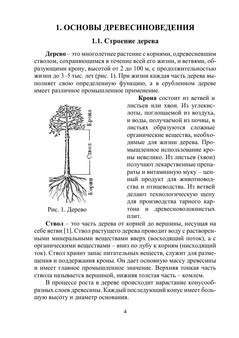 Книга состоит из шести глав. В первой главе учебного пособия даны общие сведения о строении дерева. Показаны макроструктура дерева, приведены основные породы, физические свойства: гигроскопичность, плотность, деформативность, влажность. Рассмотрены пороки древесины, классификация древесных материалов, композиционные материалы.