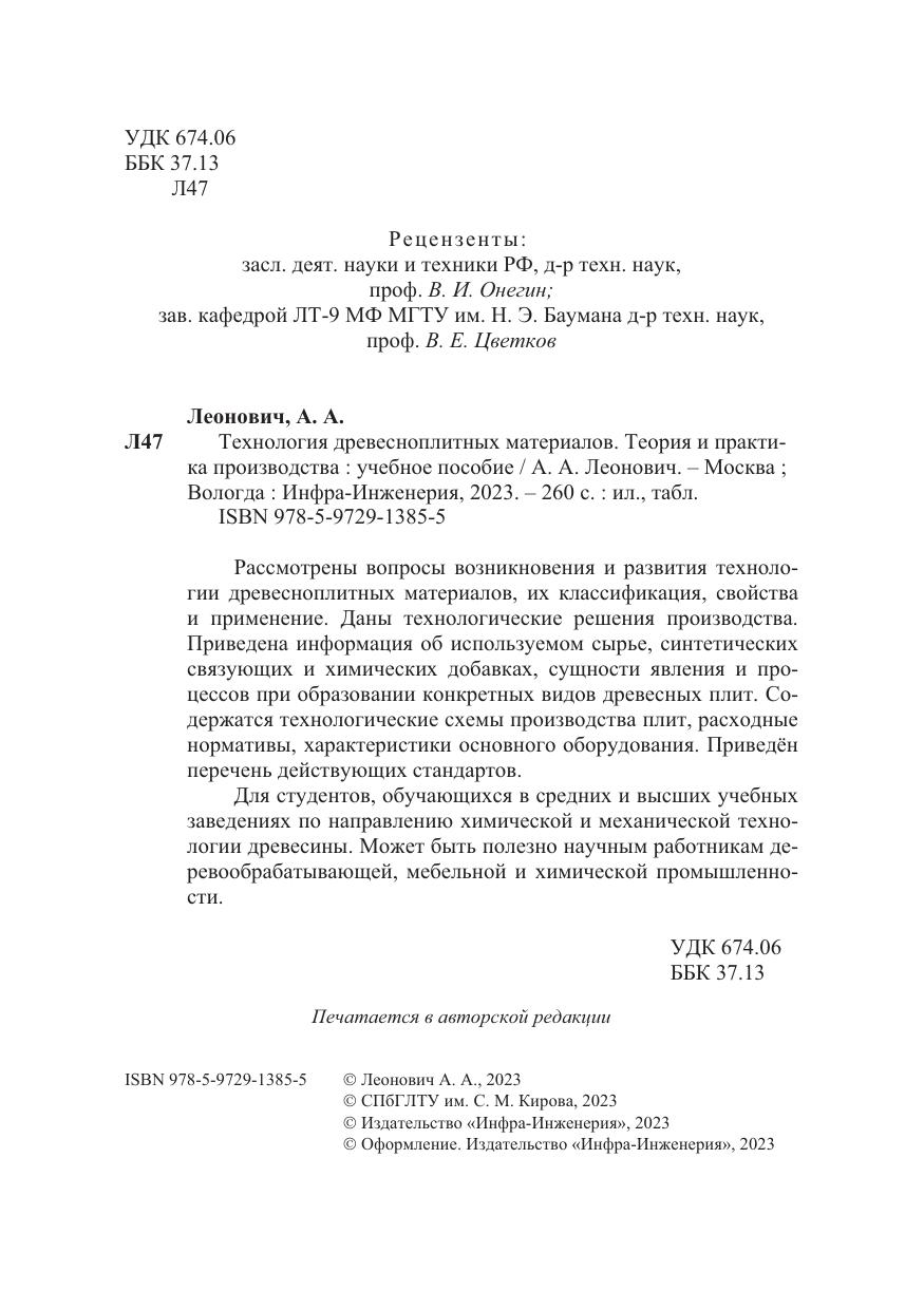 Рассмотрены вопросы возникновения и развития технологии древесноплитных материалов, их классификация, свойства и применение. Даны технологические решения производства. Приведена информация об используемом сырье, синтетических связующих и химических добавках, сущности явления и процессов при образовании конкретных видов древесных плит. Содержатся технологические схемы производства плит, расходные нормативы, характеристики основного оборудования. Приведён перечень действующих стандартов.