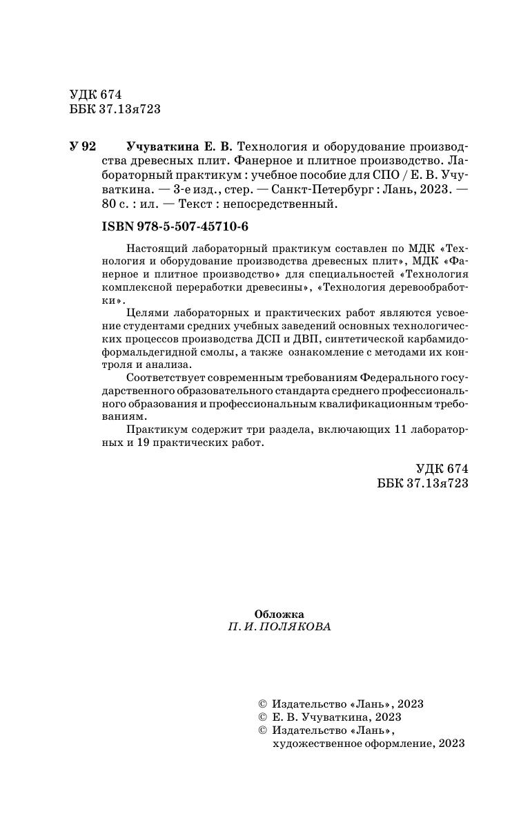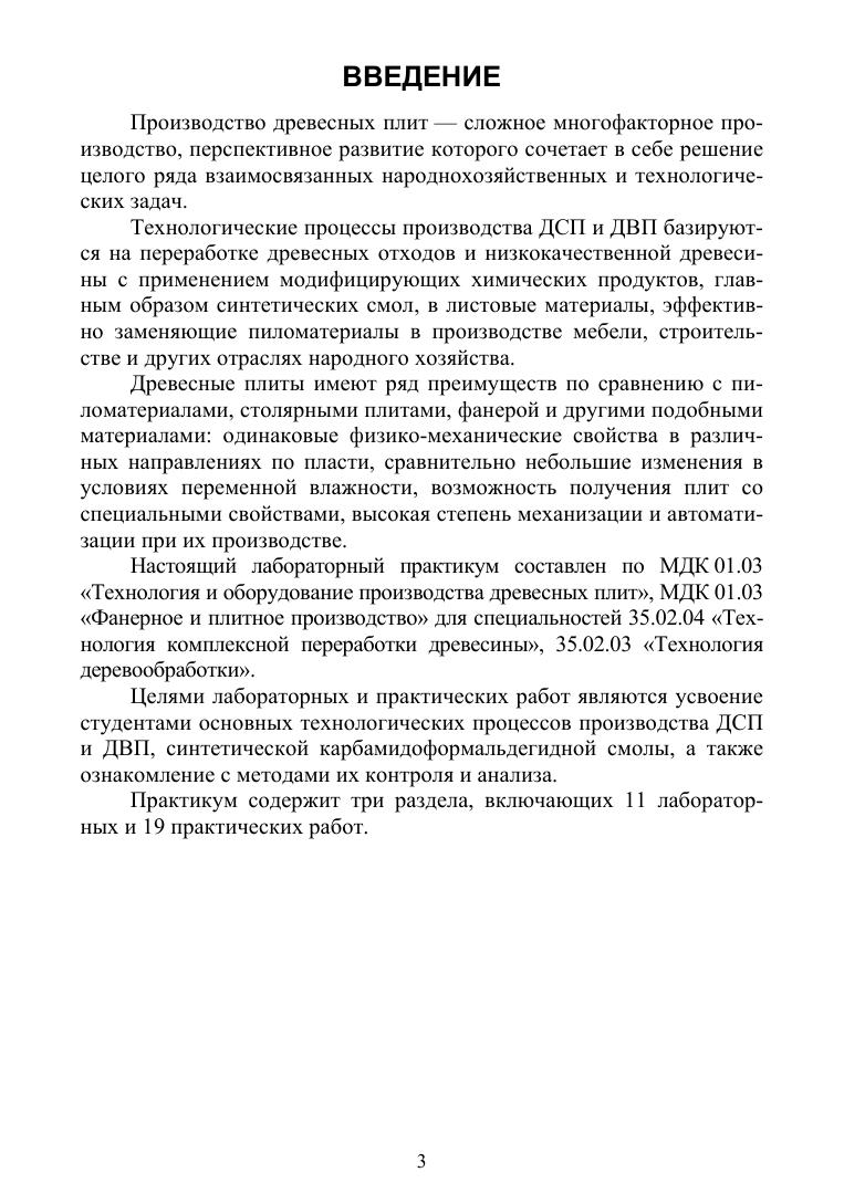 Настоящий лабораторный практикум составлен по МДК «Технология и оборудование производства древесных плит», МДК «Фанерное и плитное производство для специальностей «Технология комплексной переработки древесины», «Технология деревообработки».Целью лабораторных и практических работ является усвоение студентами основных технологических процессов производства ДСП и ДВП, синтетической карбомидоформальдегидной смолы, а также ознакомление с методами их контроля и анализа. Практикум содержит три раздела, включающих 11 лабораторных и 19 практических работ. Соответствует современным требованиям Федерального государственного образовательного стандарта среднего профессионального образования и профессиональным квалификационным требованиям.