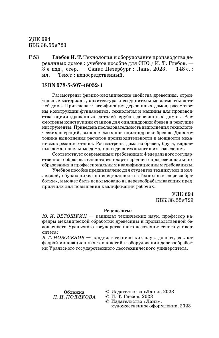 Рассмотрены физико-механические свойства древесины, строительные материалы, архитектура и соединительные элементы деталей дома. Приведена классификация деревянных домов, рассмотрены конструкции фундаментов, технология и машины для производства оцилиндрованных деталей срубов деревянных домов. Рассмотрены конструкции станков для оцилиндровки бревен и режущие инструменты. Приведена последовательность выполнения технологических операций, выполняемых при оцилиндровке бревна. Дана методика выполнения расчетов производительности и мощности механизмов резания станка. Рассмотрены дома из бревен, бруса, каркасные дома, панельные дома, приведена технология их возведения. Соответствует современным требованиям Федерального государственного образовательного стандарта среднего профессионального образования и профессиональным квалификационным требованиям. Учебное пособие предназначено для студентов техникумов и колледжей, обучающихся по специальности Технология деревообработки и может быть использовано на деревообрабатывающих предприятиях для повышения квалификации рабочих.