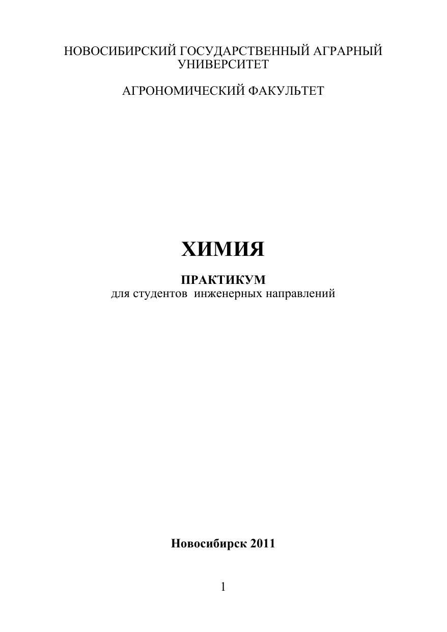 Практикум содержит задания для индивидуальной самостоятельной работы студентов и выполнения лабораторных работ по всем темам курса общей химии по циклу ЕН.Ф.04. и МЕН.Б.03. Предназначен для студентов 1-го курса Инженерного института и биолого-технологического факультета, обучающихся по инженерным направлениям (специальностям): 050501 − профессиональное обучение, 110300 − агроинженерия, 190600 − эксплуатация транспортно-технологических машин и комплексов, 200503 − стандартизация и метрология. Квалификация − бакалавр.