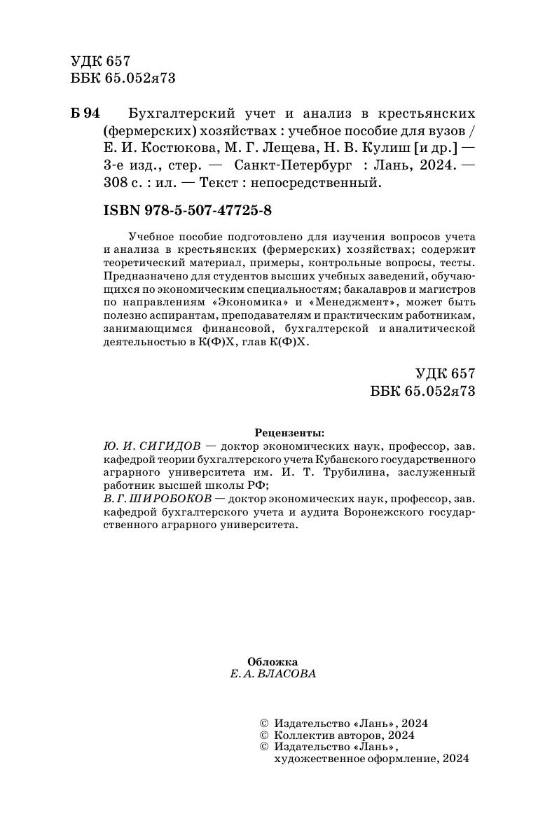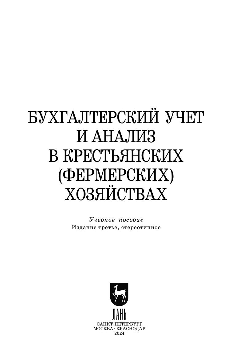 Учебное пособие подготовлено для изучения вопросов учета и анализа в крестьянских (фермерских) хозяйствах, содержит теоретический материал, примеры, контрольные вопросы, тесты. Предназначено для студентов высших учебных заведений, обучающихся по экономическим специальностям, бакалавров и магистров по направлениям «Экономика» и «Менеджмент», может быть полезно аспирантам, преподавателям и практическим работникам, занимающимся финансовой, бухгалтерской и аналитической деятельностью в К(Ф)Х, глав К(Ф)Х.