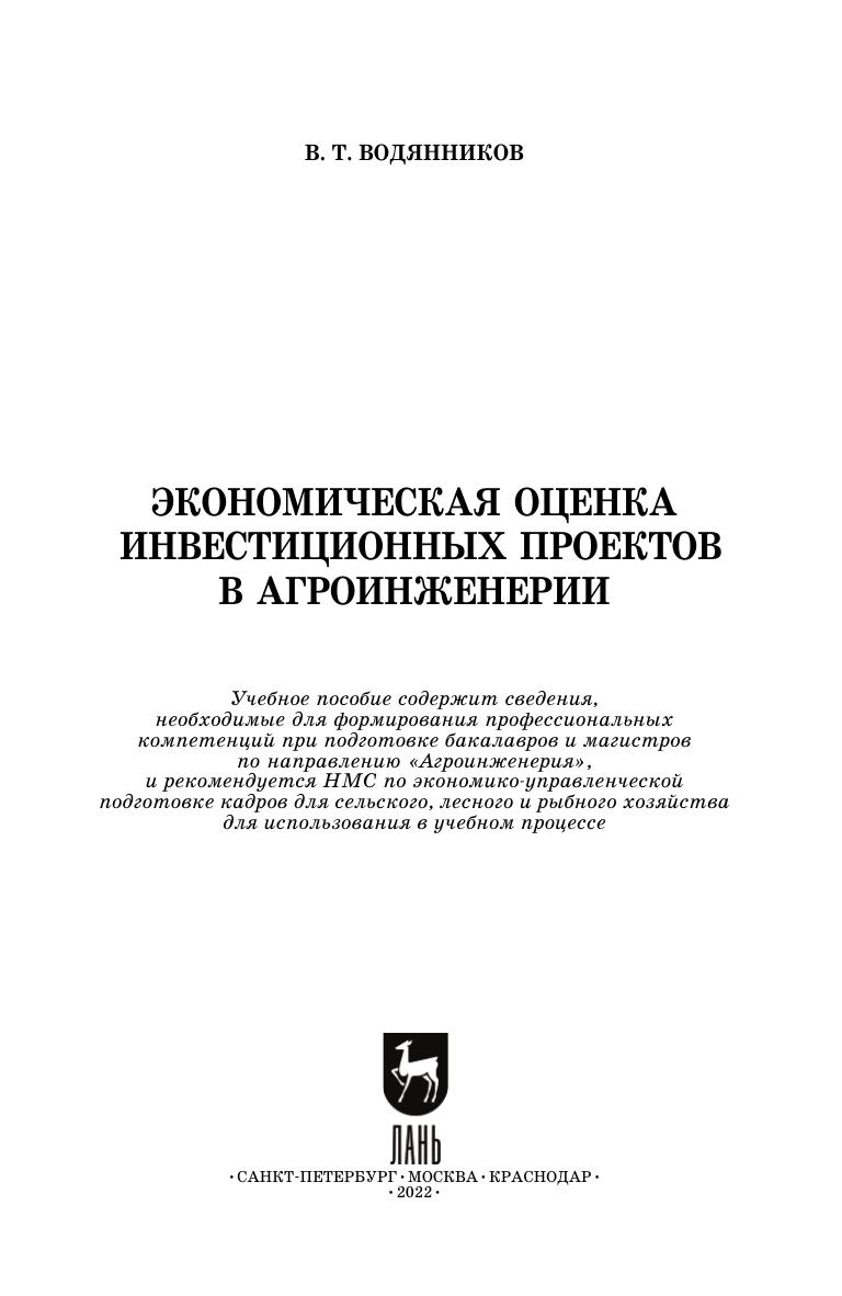 Учебное пособие разработано в соответствии с требованиями ФГОС ВО, ОПОП ВО и Учебного плана подготовки магистров по направлению «Агроинженерия», а так же с учетом учебной программы дисциплины «Оценка эффективности инвестиционных проектов в агроинженерии». Учебный материал пособия направлен на формирование у студентов универсальных, общепрофессиональных и профессиональных компетенций, в соответствии с профессиональным стандартом «Специалист в области механизации сельского хозяйства».