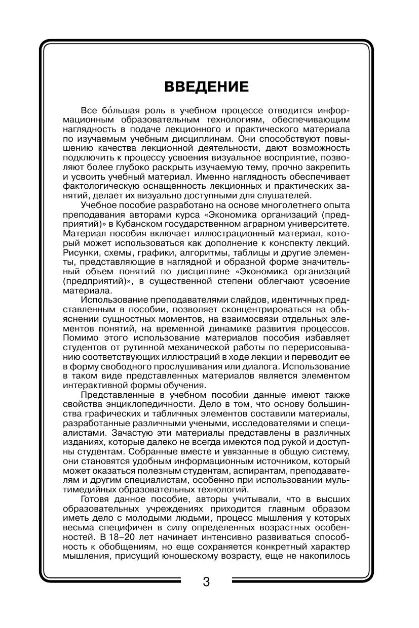 В учебном пособии представлен иллюстрационный материал по разделам дисциплины «Экономика организаций (предприятий)», включено свыше 500 схем, рисунков, таблиц, диаграмм, алгоритмов и др. иллюстраций. Пособие содержит краткие пояснения, список использованных источников. Рекомендуется студентам, аспирантам, преподавателям вузов, всем тем, кто самостоятельно постигает основы современной экономики, для изучения курса с использованием мультимедийных образовательных технологий.