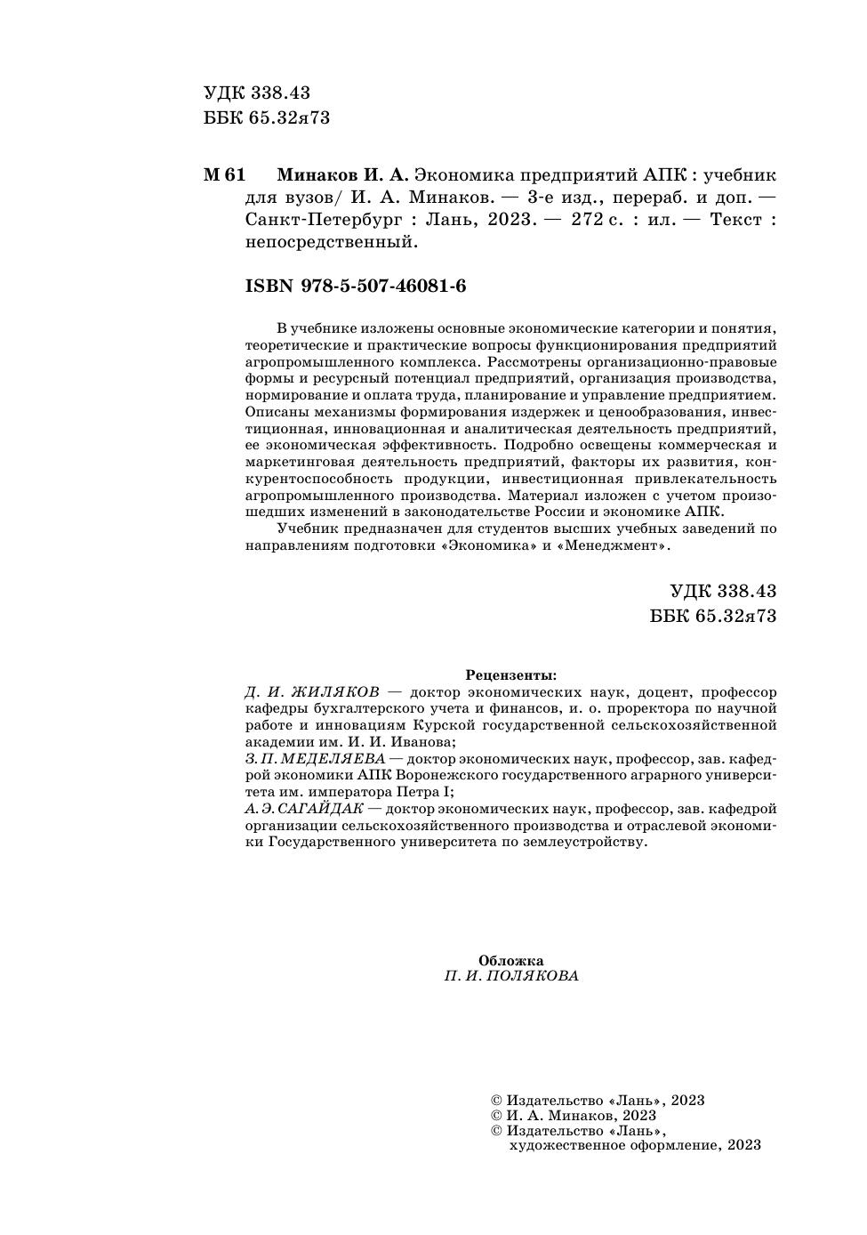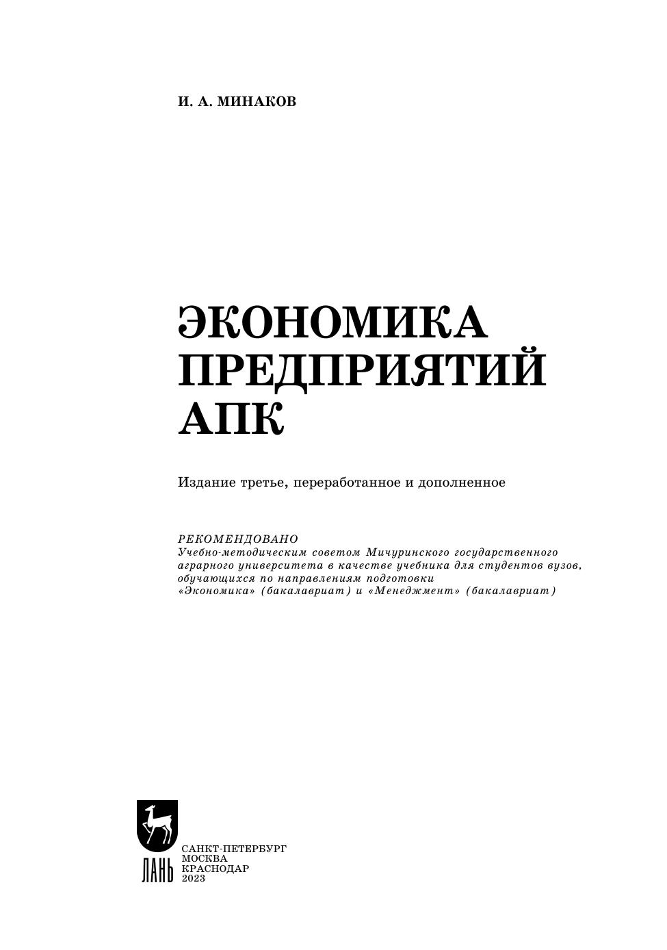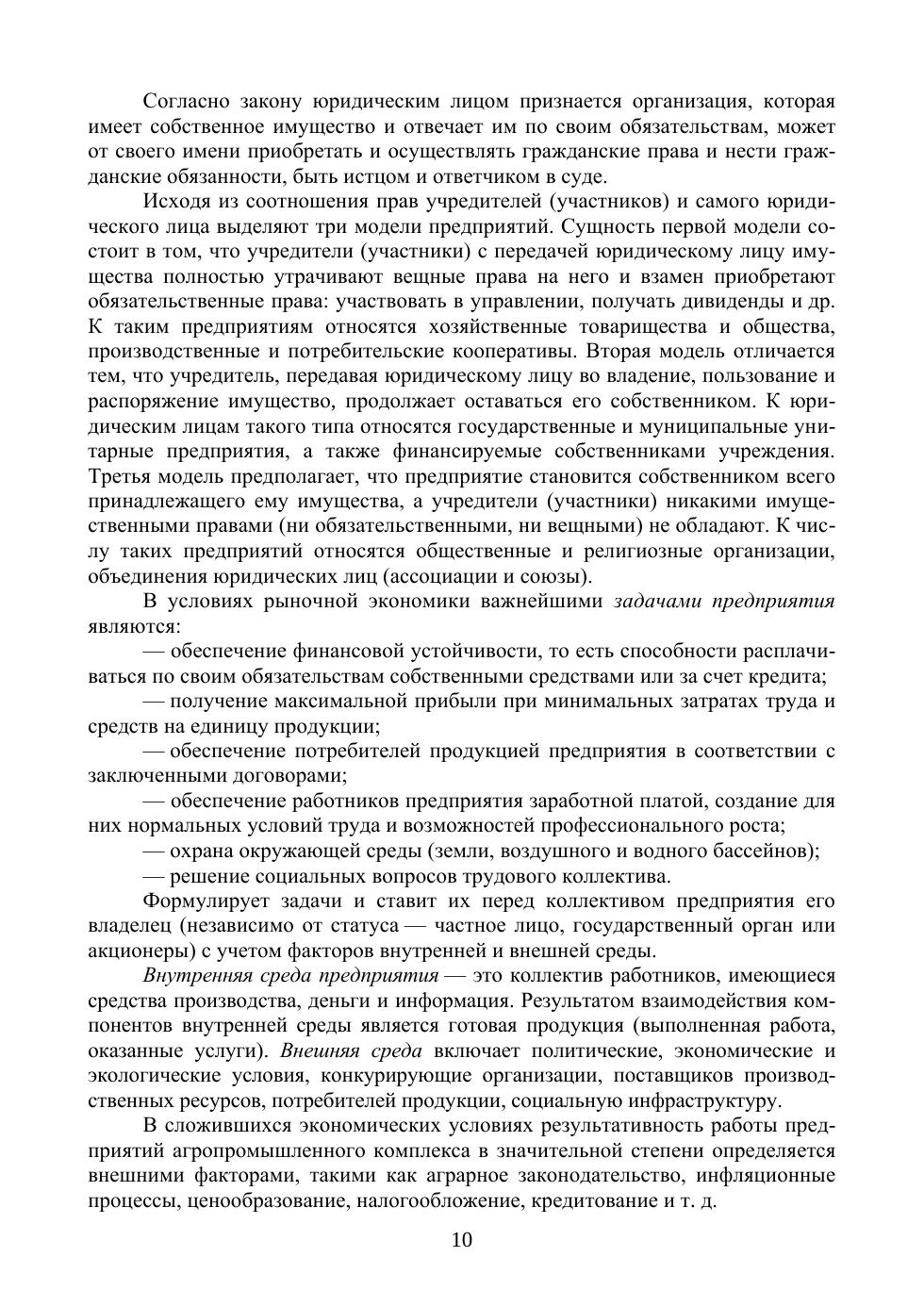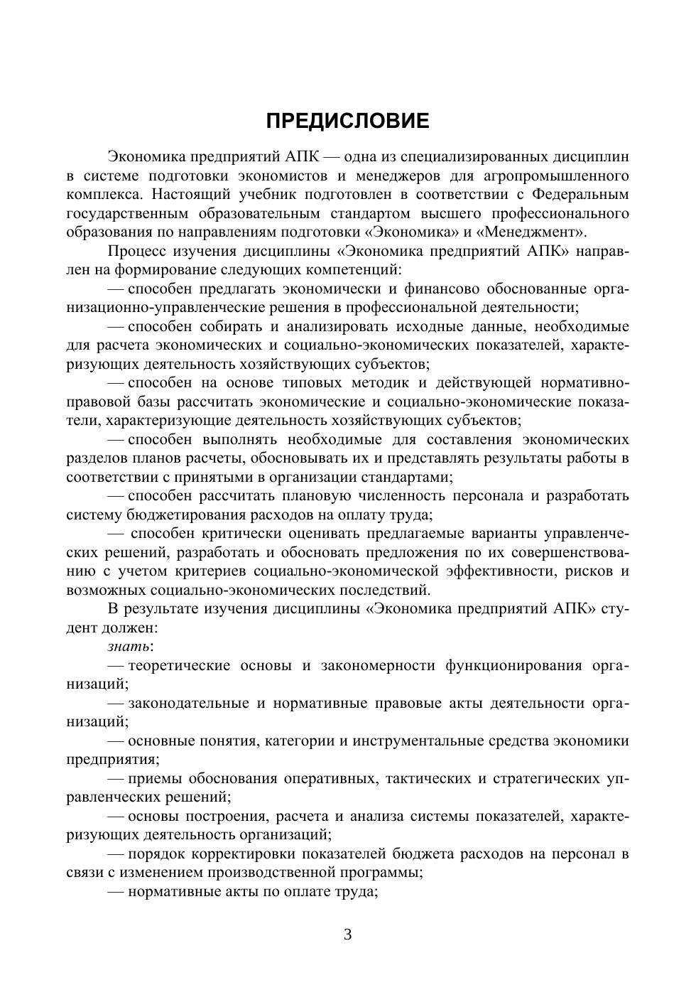 В учебнике изложены основные экономические категории и понятия, теоретические и практические вопросы функционирования предприятий агропромышленного комплекса. Рассмотрены организационно-правовые формы и ресурсный потенциал предприятий, организация производства, нормирование и оплата труда, планирование и управление предприятием. Описаны механизмы формирования издержек и ценообразования, инвестиционная, инновационная и аналитическая деятельность предприятий, ее экономическая эффективность. Подробно освещены коммерческая и маркетинговая деятельность предприятий, факторы их развития, конкурентоспособность продукции, инвестиционная привлекательность агропромышленного производства. Материал изложен с учетом произошедших изменений в законодательстве России и экономике АПК. Учебник предназначен для студентов высших учебных заведений по направлениям подготовки «Экономика» и «Менеджмент».