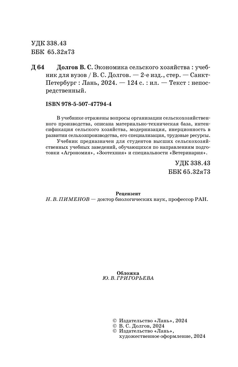 В учебнике отражены вопросы организации сельскохозяйственного производства, описана материально-техническая база, интенсификация сельского хозяйства, модернизация, инерционность в развитии сельхозпроизводства, его специализация, трудовые ресурсы. Учебник предназначен для студентов высших сельскохозяйственных учебных заведений, обучающихся по направлениям подготовки «Агрономия», «Зоотехния» и специальности «Ветеринария».