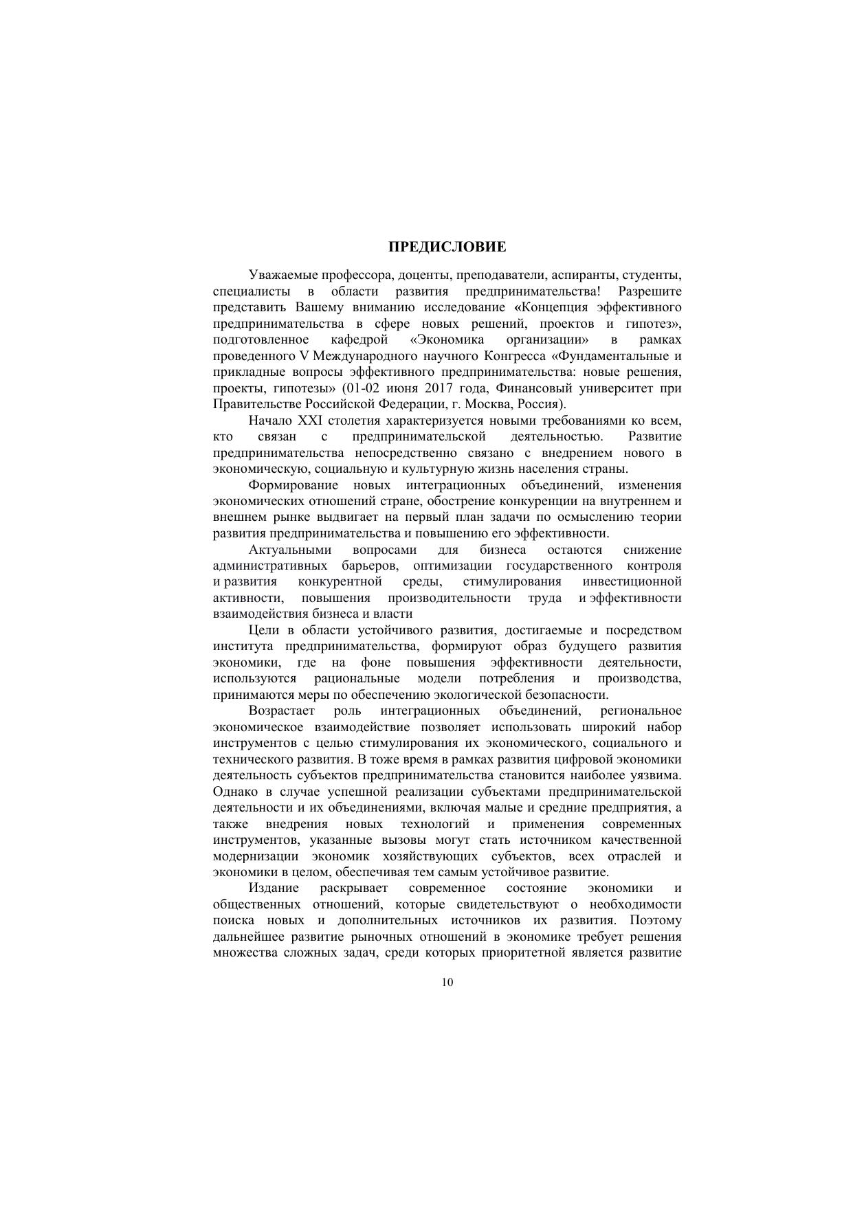 Концепция эффективного предпринимательства в сфере новых решений, проектов и гипотез