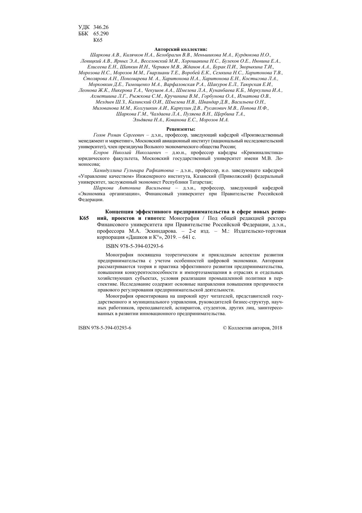 Монография посвящена теоретическим и прикладным аспектам развития предпринимательства с учетом особенностей цифровой экономики. Авторами рассматриваются теория и практика эффективного развития предпринимательства, повышения конкурентоспособности и импортозамещения в отраслях и отдельных хозяйствующих субъектах, условия реализации промышленной политики в перспективе. Исследование содержит основные направления повышения прозрачности правового регулирования предпринимательской деятельности. Монография ориентирована на широкий круг читателей, представителей государственного и муниципального управления, руководителей бизнес-структур, научных работников, преподавателей, аспирантов, студентов, других лиц, заинтересованных в развитии инновационного предпринимательства.