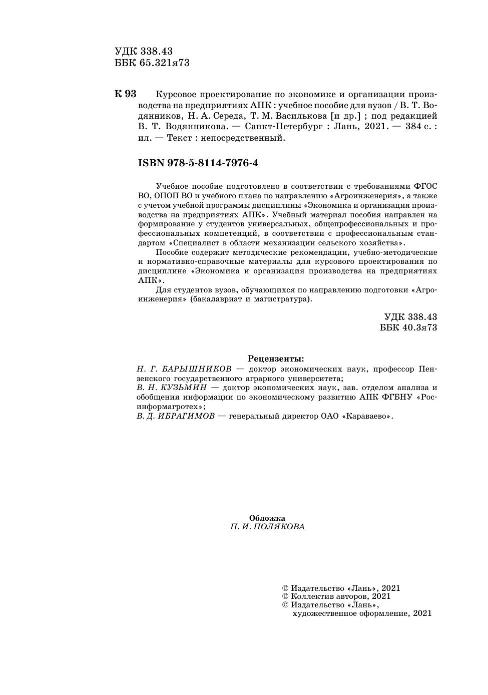 Пособие содержит методические рекомендации, учебно-методические и нормативно-справочные материалы для курсового проектирования по дисциплине «Экономика и организация производства на предприятиях АПК».