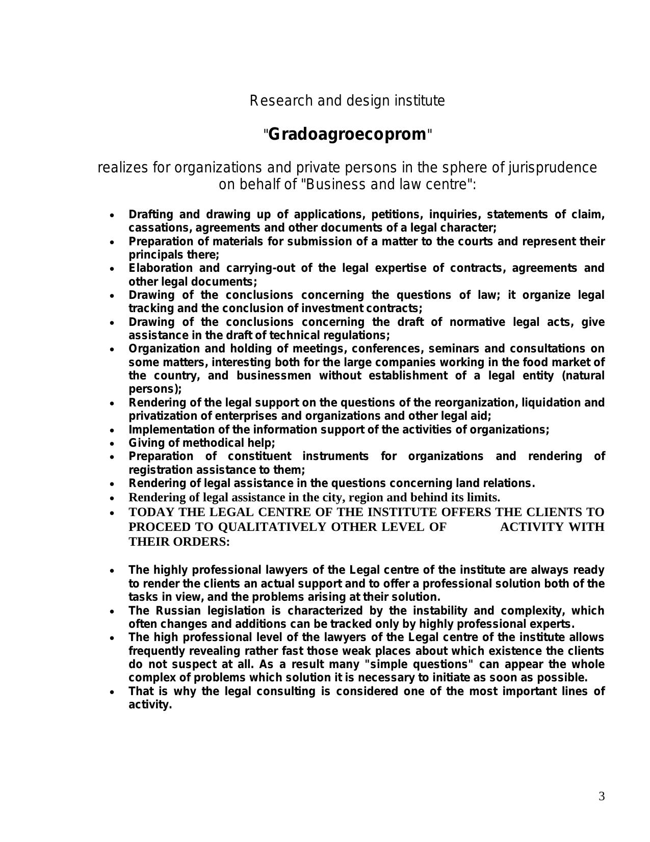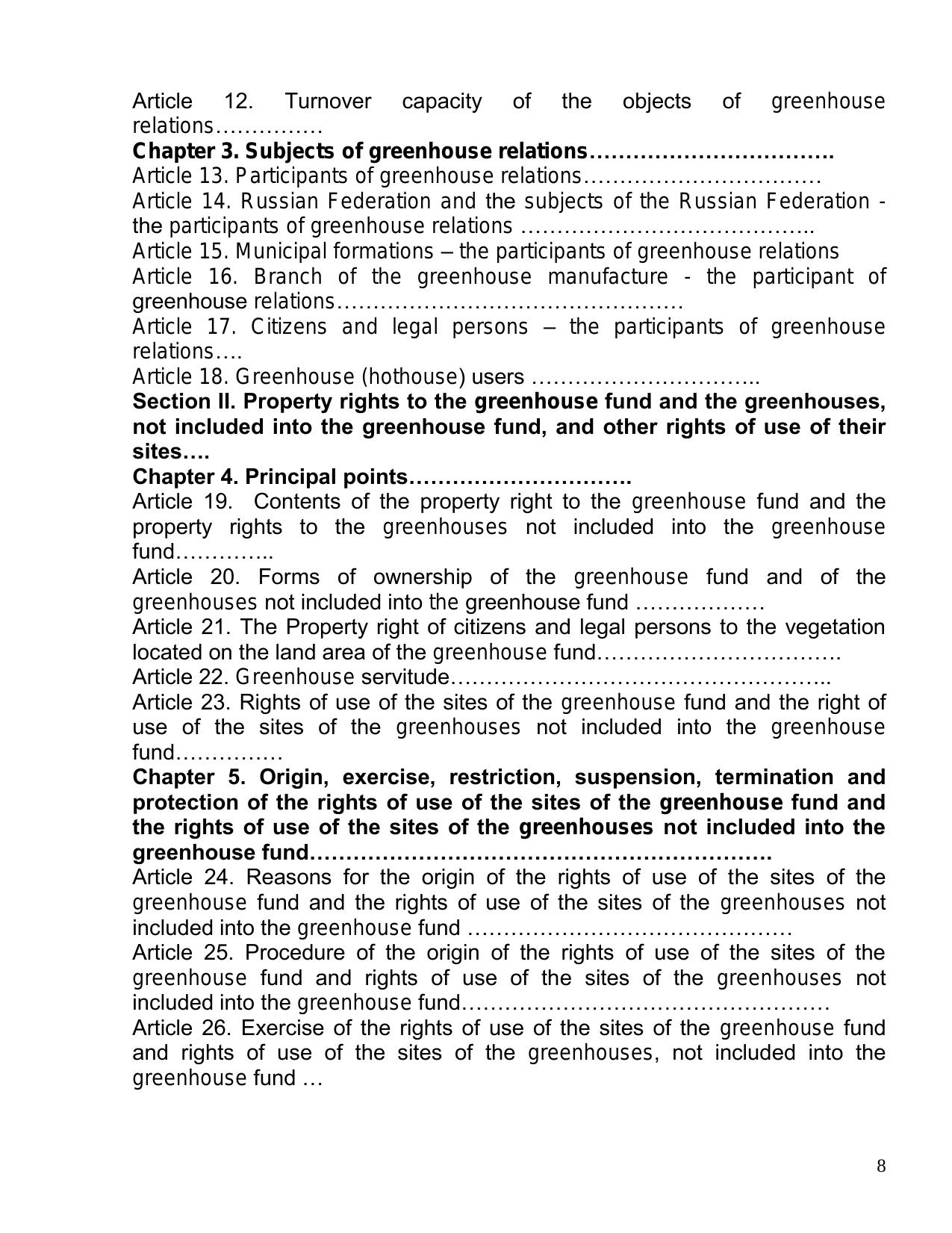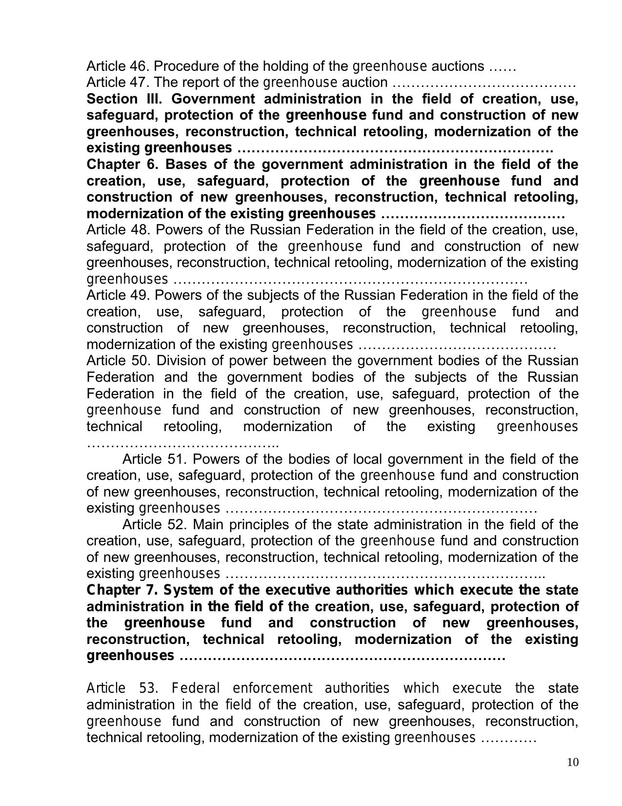 The historical genesis of the development of the legislation in the agriculture of the Russian Federation during the 1917-2005 period is shown, and also the modern status of the legislation in the agro industrial complex of the Russian Federation, its features, the problematic of the agro industrial legislation. Much attention is devoted to the regulation of the greenhouse activity in the branch of the protected ground of the agriculture of the Russian Federation, a bill "Greenhouse Code of the Russian Federation", adjusting legal relations in the branch of the protected ground of the Russian Federation is cited.