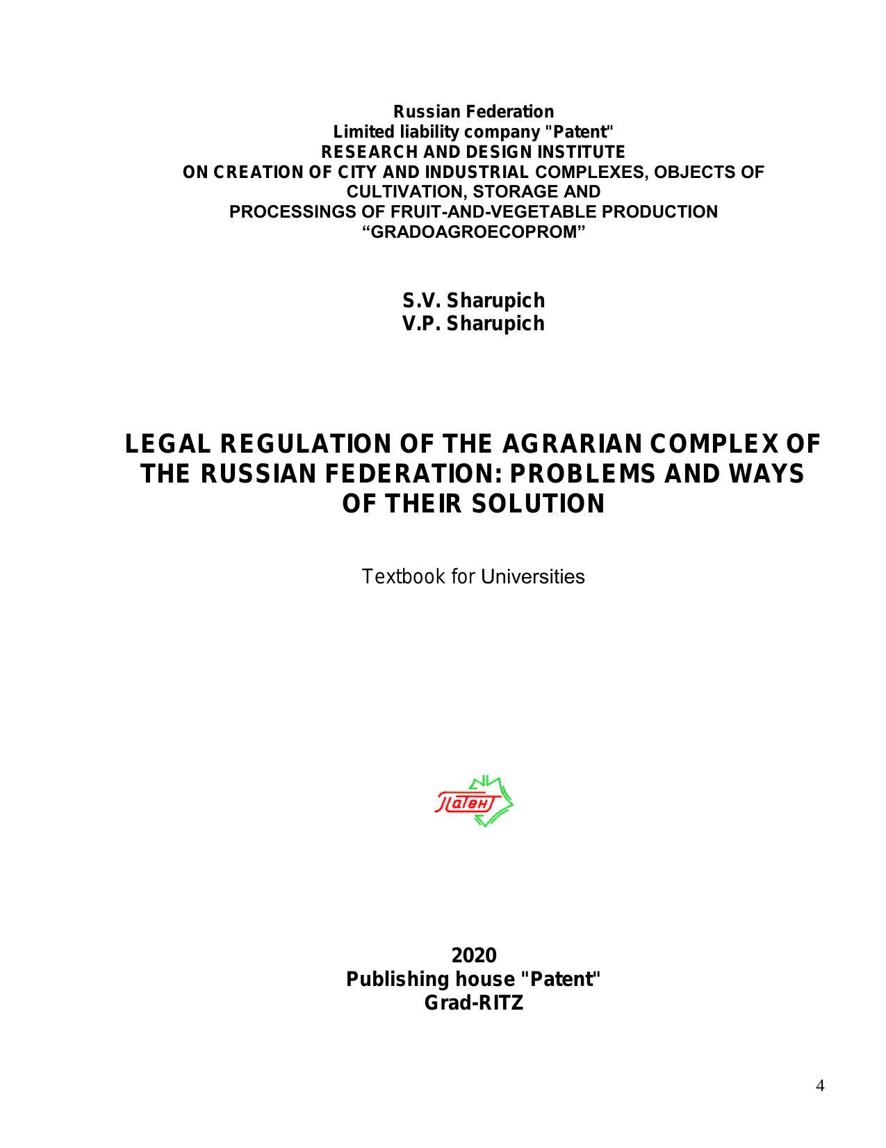 Legal regulation of the agrarian complex of the russian federation: problems and ways of their solution
