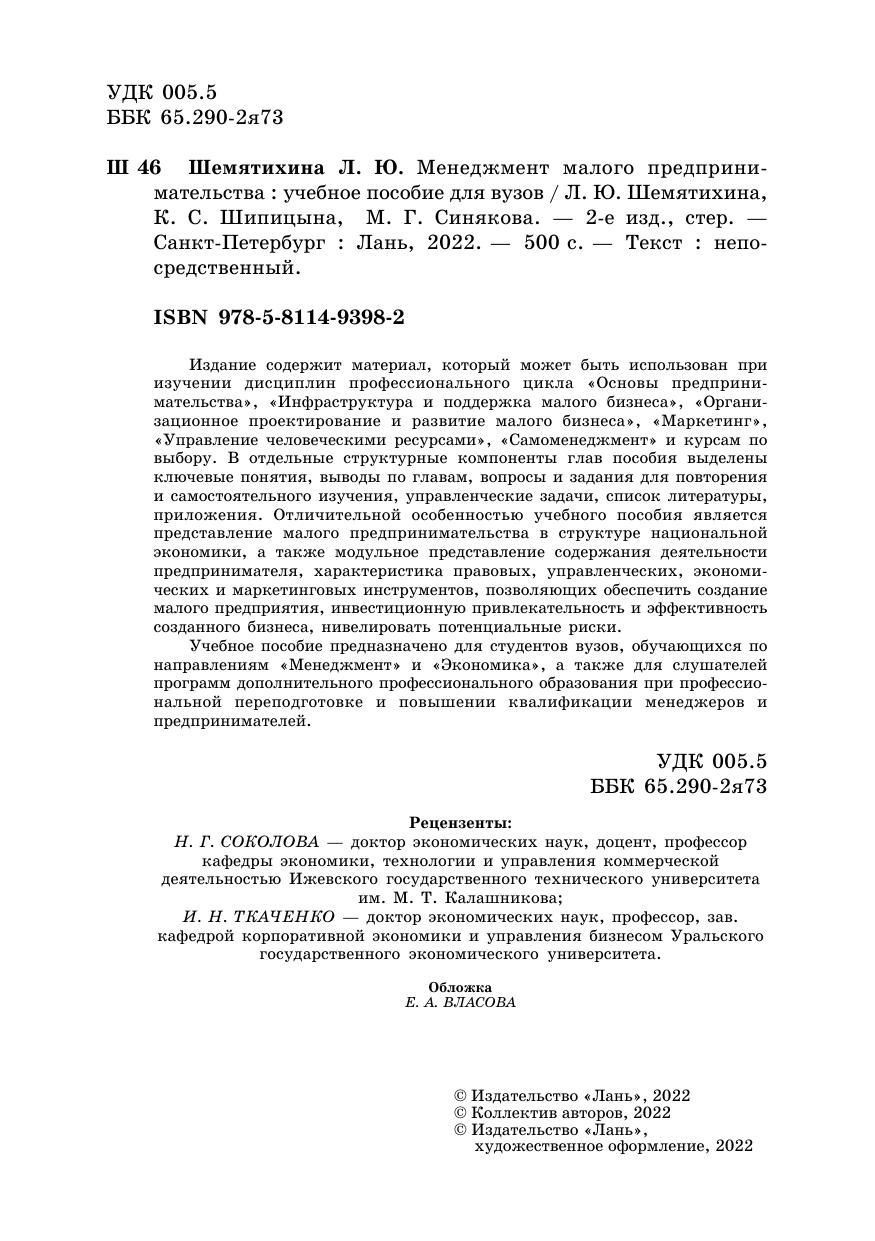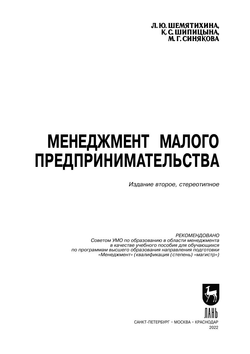 Учебное пособие предназначено для студентов, обучающихся по укрупненной группе направлений «Экономика и управление», в т. ч. по направлениям «Менеджмент» (профиль «Управление малым бизнесом») и «Экономика» (профиль «Экономика малого и среднего предпринимательства»), а также для слушателей программ дополнительного профессионального образования при профессиональной переподготовке и повышении квалификации менеджеров и предпринимателей.