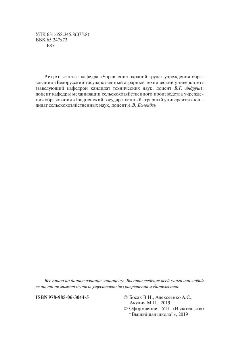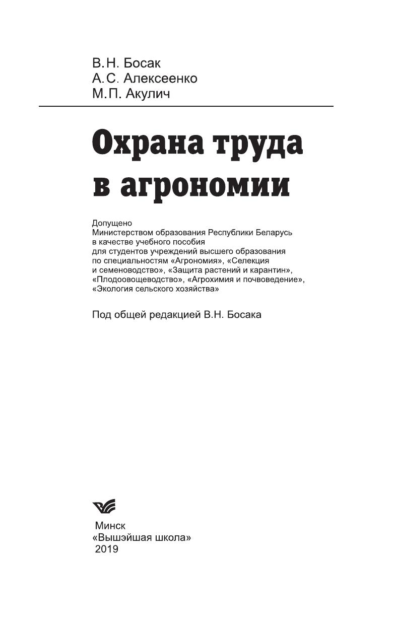 Рассмотрены вопросы учебной дисциплины «Охрана труда», включающие теоретические, правовые и нормативные основы охраны труда, организацию работ по охране труда, основы производственной санитарии, техники безопасности и пожарной безопасности, доврачебную помощь пострадавшим при несчастных случаях. Для студентов сельскохозяйственных специальностей учреждений высшего образования, практических работников, преподавателей. Будет полезно широкому кругу читателей, интересующихся вопросами охраны труда.