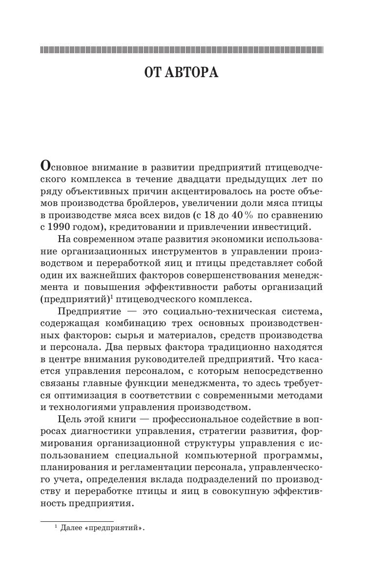Рассмотрены вопросы совершенствования управления, приведены модели и схемы системы управления производством и переработкой продукции птицеводства, ее организационно-функциональных структур, методы оценки сложности труда основных рабочих, их оптимальной численности на операциях первичной и глубокой переработки птицы, построения единой системы оплаты труда персонала и повышения эффективности управления использованием внутрипроизводственных ресурсов. Книга подготовлена с учетом опыта разработки методической и нормативной документации для предприятий птицеводческого комплекса, управленческого консультирования и проведения обучающих семинаров. Для менеджеров высшего и среднего звена, служб управления персоналом предприятий и организаций птицеводческого комплекса, консультантов по управлению, студентов и преподавателей экономических вузов (факультетов) пищевой промышленности и сельского хозяйства, слушателей учебных заведений дополнительного профессионального образования.
