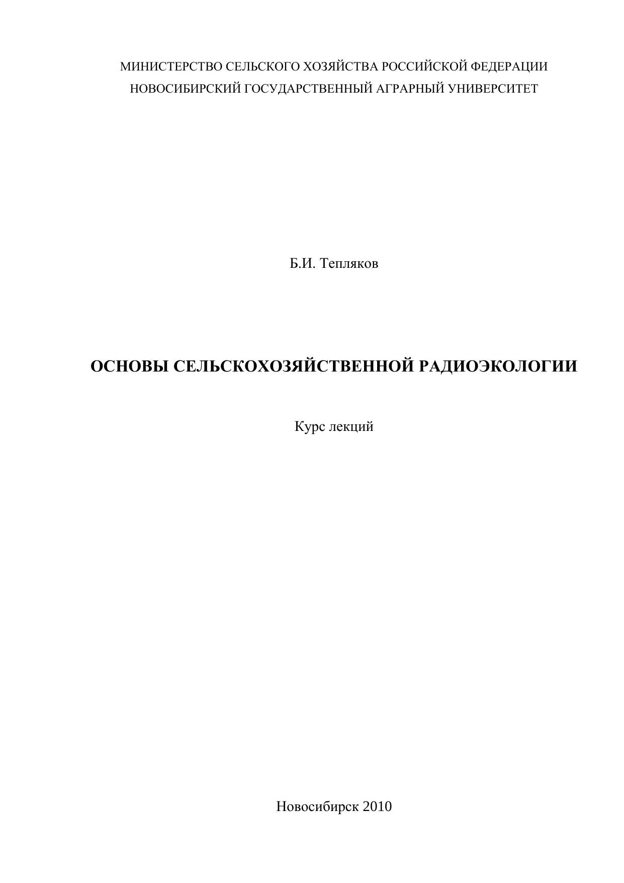 Основы сельскохозяйственной радиоэкологии