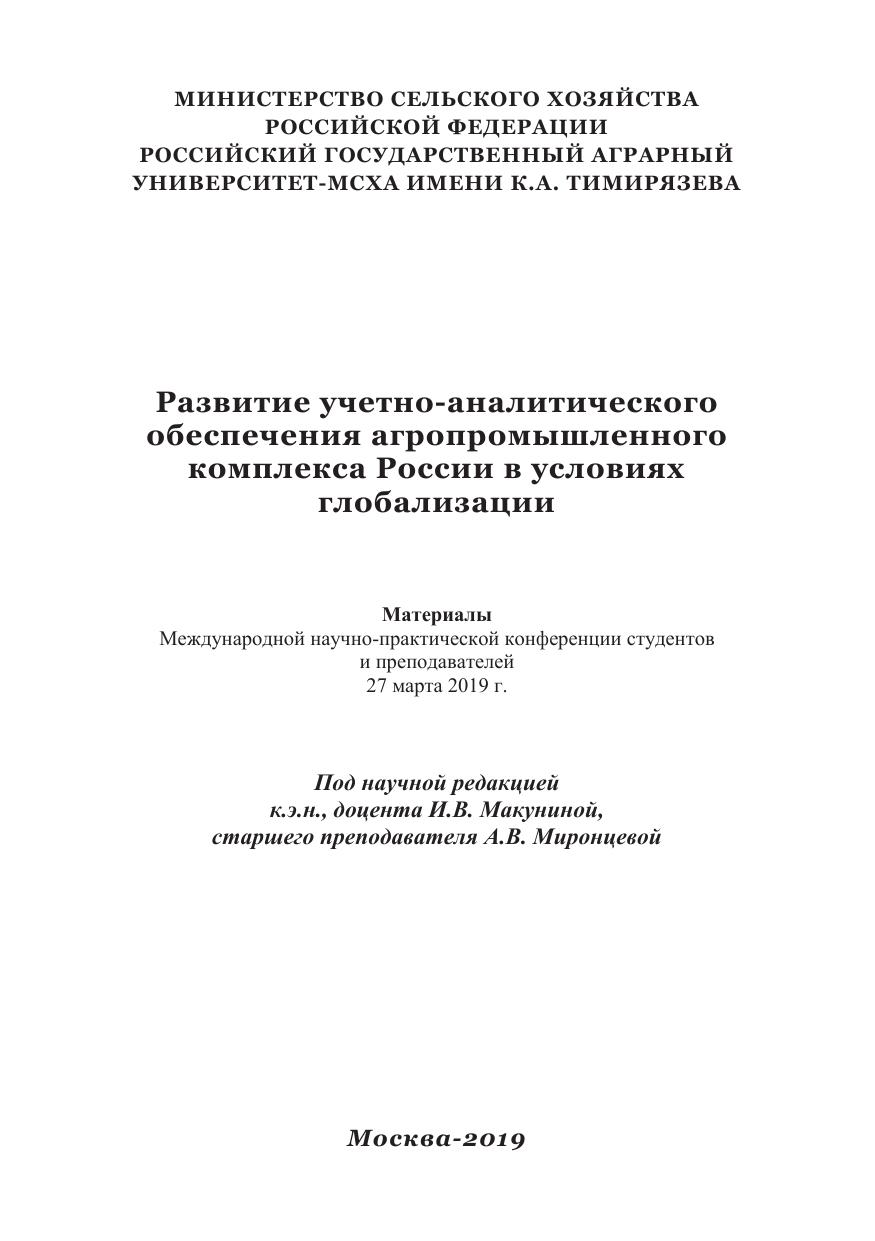 Развитие учетно-аналитического обеспечения агропромышленного комплекса России в условиях глобализации
