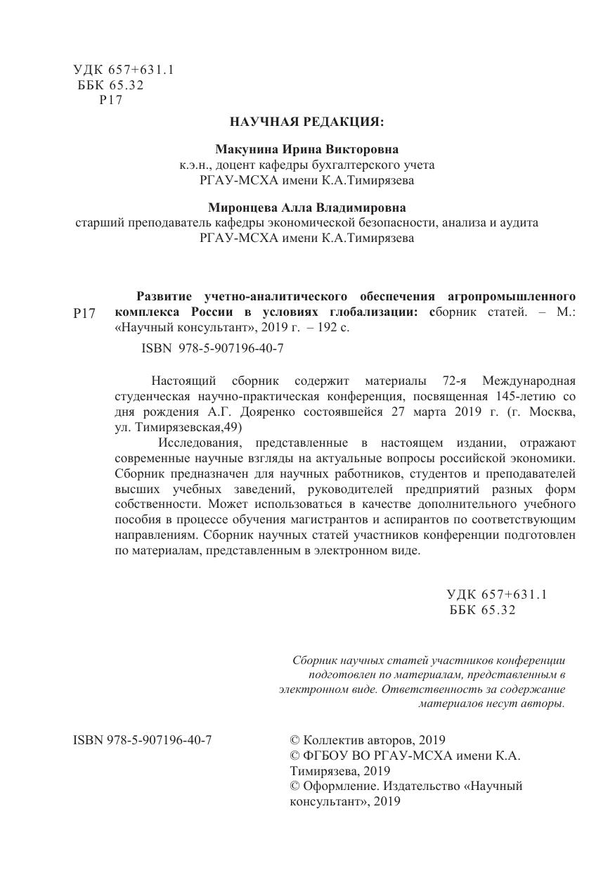 Настоящий сборник содержит материалы 72-я Международная студенческая научно-практическая конференция, посвященная 145-летию со дня рождения А.Г. Дояренко состоявшаяся 27 марта 2019г. (г.Москва, ул. Тимирязевская,49)