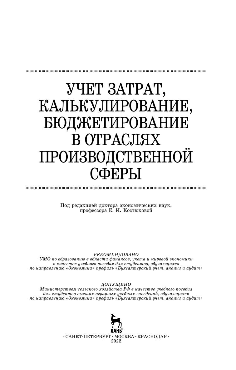 Учебное пособие подготовлено для изучения вопросов учета затрат, калькулирования фактической себестоимости продукции сельскохозяйственного производства, бюджетирования и контроля за затратами, содержит теоретический материал, примеры, контрольные вопросы, практические задания, тесты, задания для самостоятельной работы, тематику рефератов. Пособие предназначено для студентов бакалавриата и магистратуры, обучающихся по направлениям подготовки «Технология производства и переработки сельскохозяйственной продукции», «Экономика», «Менеджмент», а также слушателей системы послевузовского образования, экономистов, работников бухгалтерской службы, аналитиков, аудиторов.