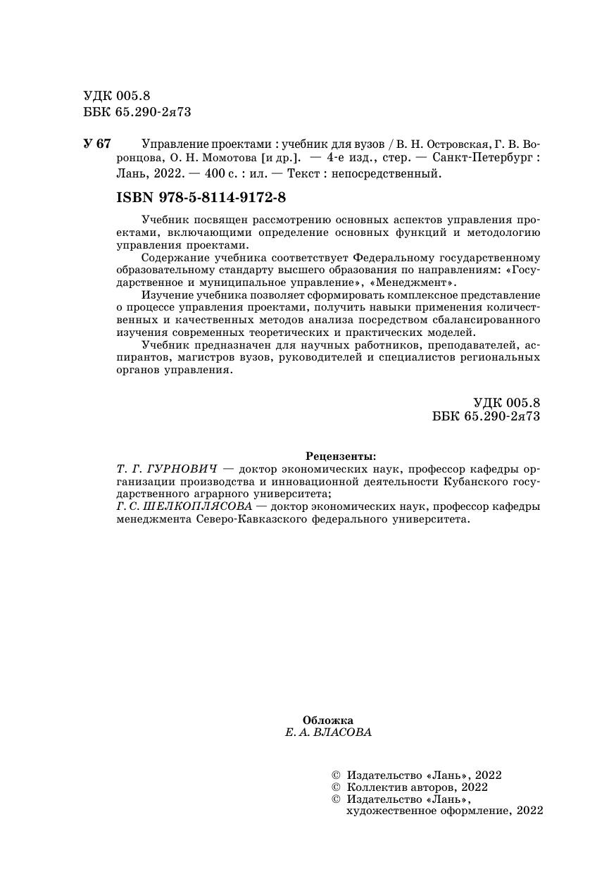Изучение учебника позволяет сформировать комплексное представление о процессе управления проектами, получить навыки применения количественных и качественных методов анализа посредством сбалансированного изучения современных теоретических и практических моделей. Учебник предназначен для научных работников, преподавателей, аспирантов, магистров вузов, руководителей и специалистов региональных органов управления.