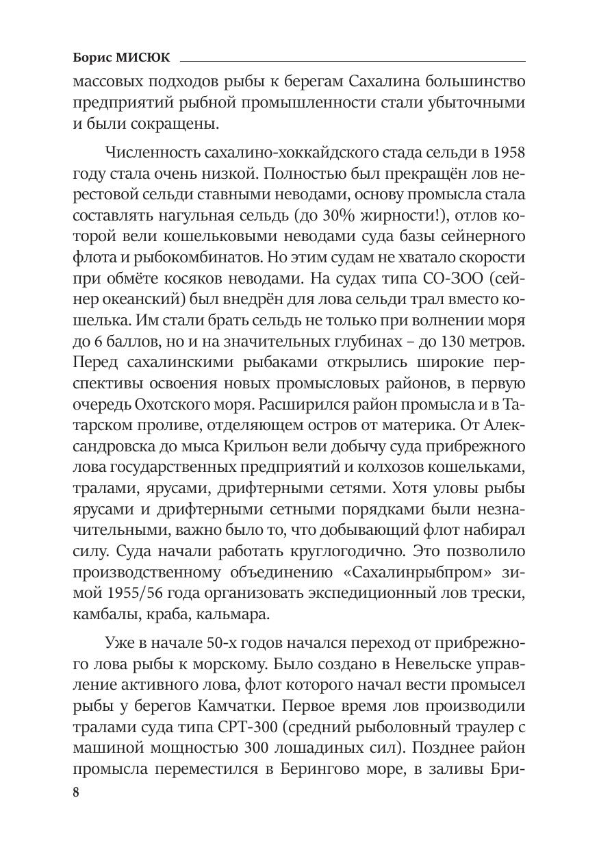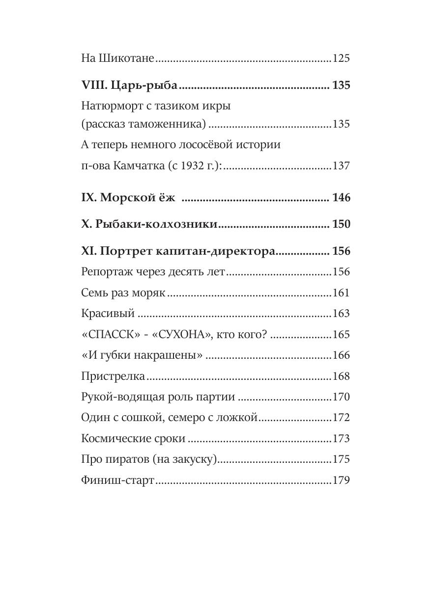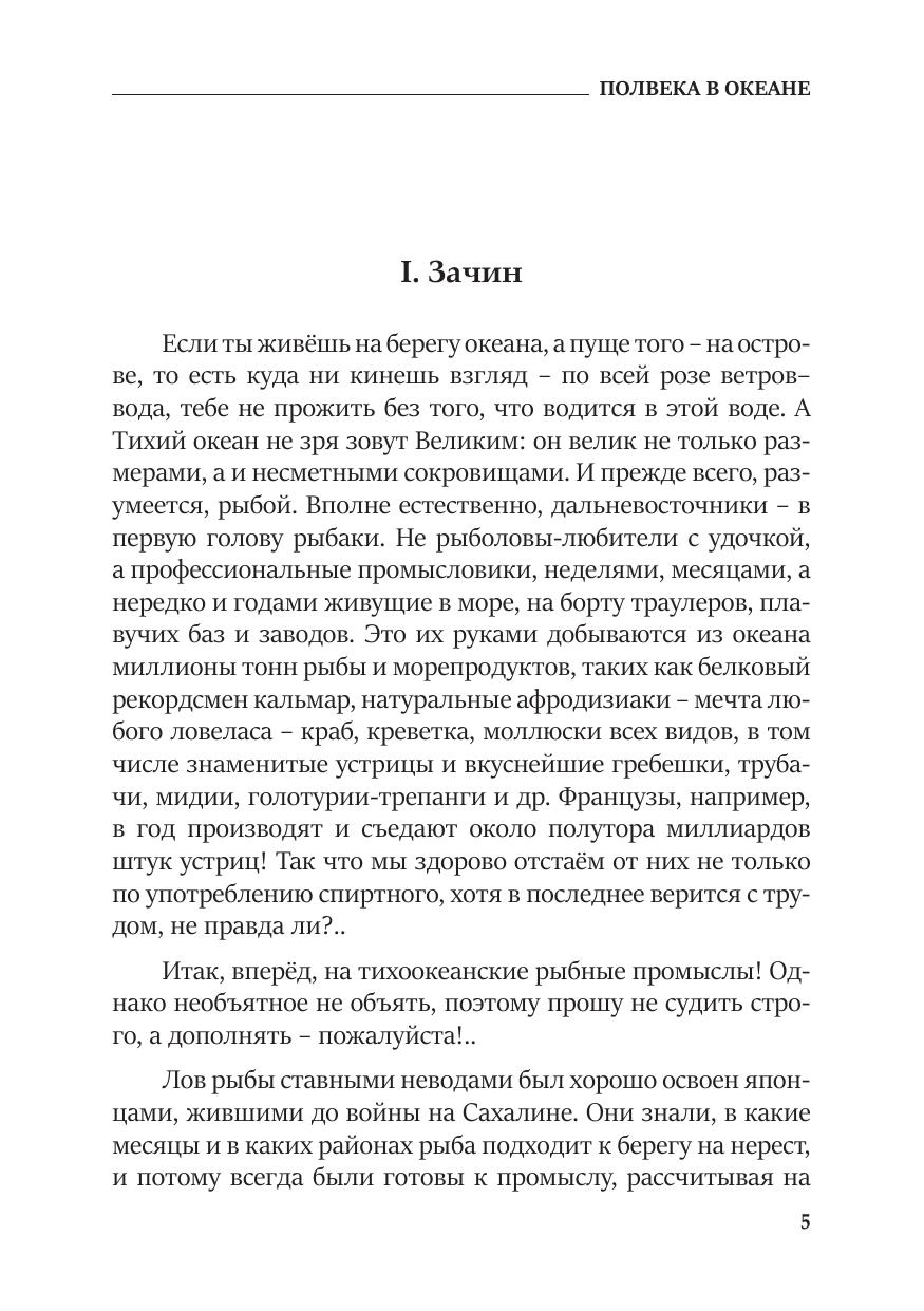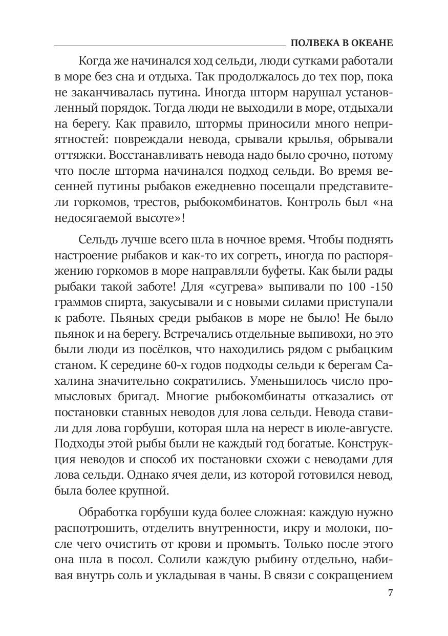 Главное внимание автор уделил людям – своим героям, дальневосточным рыбакам, живущим и работающим на этих «физически и морально устаревших» железяках и успешно кормящих страну. Автор провёл с ними в море более половины этого самого ПОЛУВЕКА. Книга будет полезна курсантам училищ, студентам и преподавателям вузов, научным сотрудникам и всем, кто специализируется в областях, связанных с рыбным хозяйством.