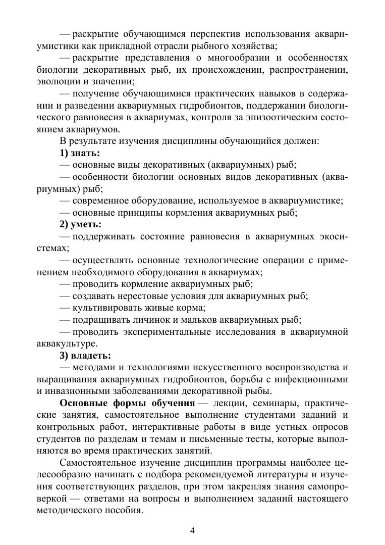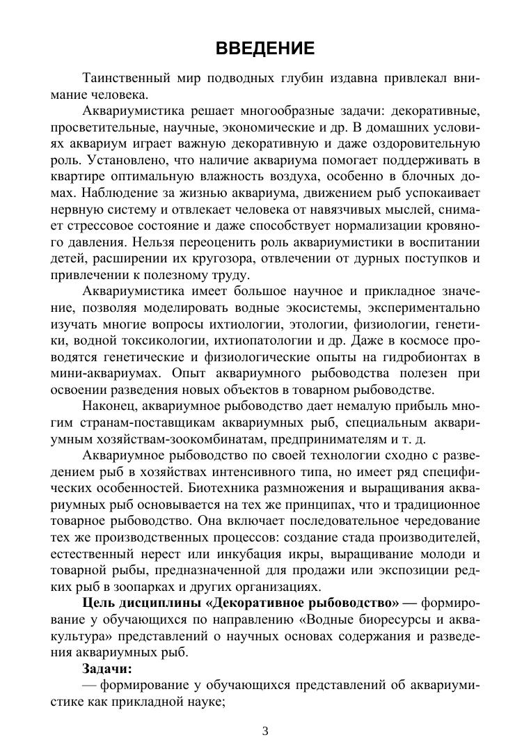 Учебное пособие предназначено для изучения дисциплины «Декоративное рыбоводство» и подготовки к самостоятельной и практической работы обучающимися по направлению «Водные биоресурсы и аквакультуры». Пособие содержит темы практических работ: устройство аквариума и уход за ним, виды аквариумов, формирование водной среды, контроль качества воды, технические средства при эксплуатации аквариума, вопросы для самоподготовки, список использованной литературы и источников.