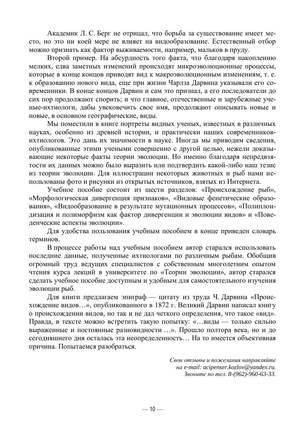 В учебном пособии рассматриваются необратимое и поступательное историческое развитие ихтиофауны, возникновение и вымирание видов, преобразование ихтиоценозов, где происходит изменение видового состава популяций с образованием новых морфологических и/или генетических отличий у рыб. Учебное пособие состоит из шести разделов: «Происхождение рыб», «Морфологическая дивергенция признаков», «Видовые фенетические образования», «Видообразование в результате мутационных процессов», «Полиплоидизация и полиморфизм как фактор дивергенции и эволюции видов» и «Поведенческие аспекты эволюции». Для удобства пользования учебным пособием в конце приведен словарь терминов. Предназначено для студентов вузов, а также будет интересно широкому кругу читателей, увлекающихся ихтиологией и проблемой эволюции.
