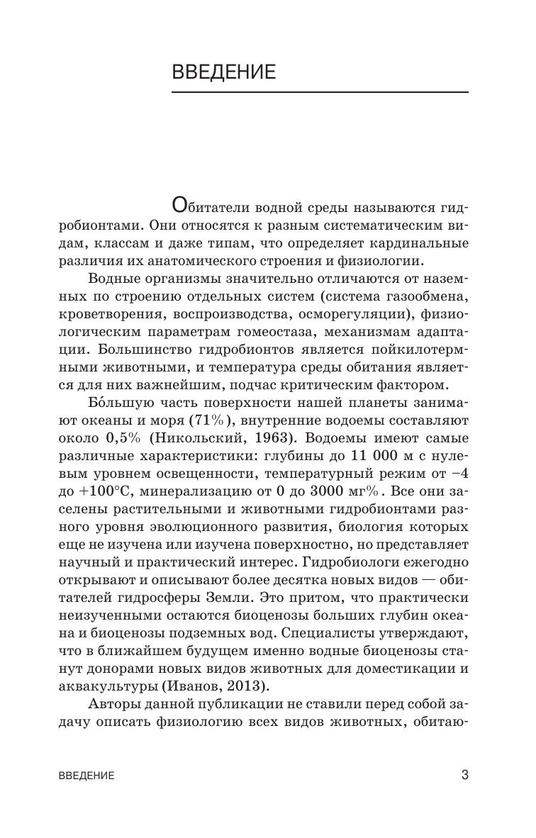 В учебном пособии обобщены результаты исследований последних лет, выполненных на представителях разных систематических групп животных (ракообразные, рыбы, амфибии, вторичноводные), выработавших морфофункциональные адаптации к жизни в водной среде. Подчеркивается актуальность и практическая значимость исследований в этом направлении для разработки приемов регулирования численности гидробионтов, их искусственного воспроизводства и сохранения видового разнообразия естественных и искусственных водоемов.