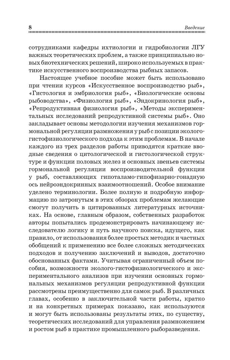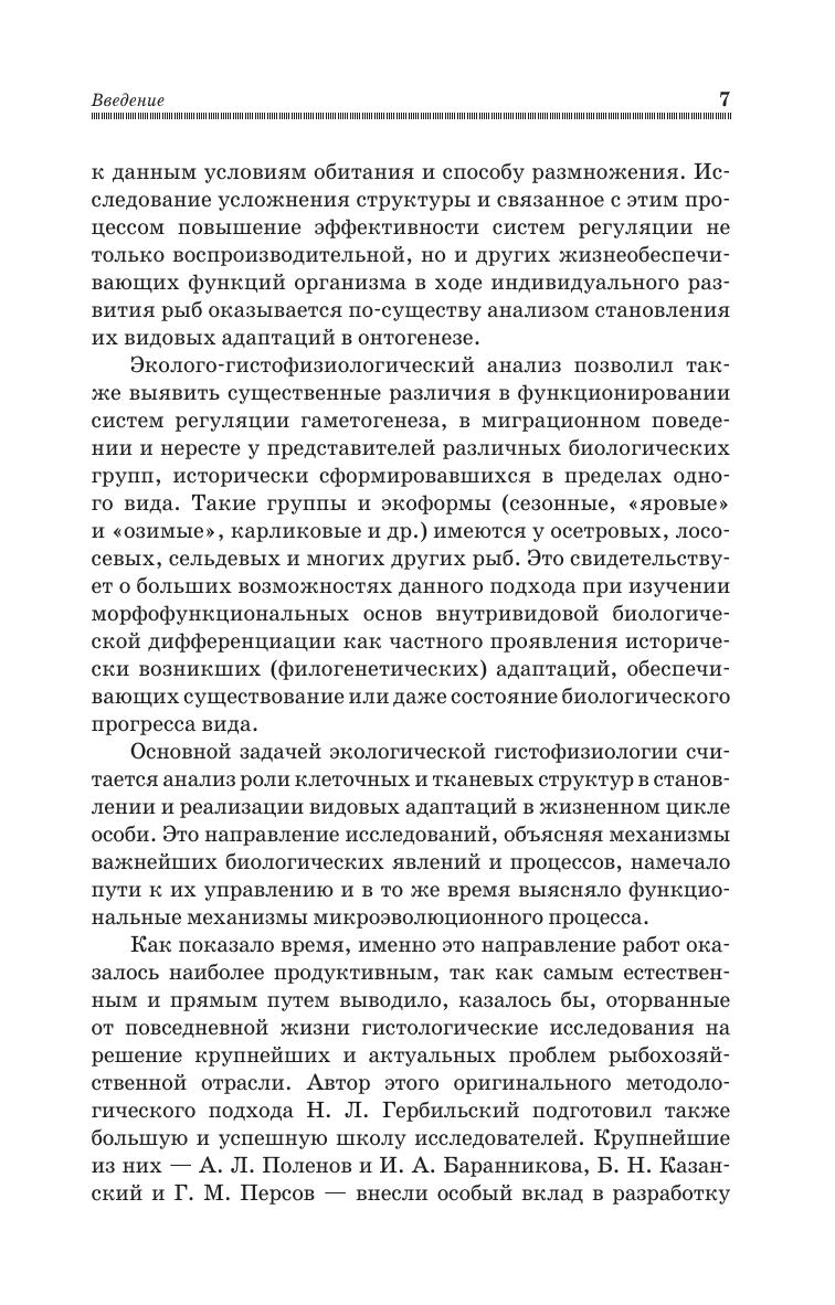 В учебном пособии рассмотрены результаты цитоморфологических, эколого-гистофизиологических и экспериментальных исследований всех звеньев гипоталамо-гипофизарно-гонадной оси нейро-эндокринных взаимоотношений на разных этапах развития и размножения осетровых и костистых рыб в связи с различным сезоном и характером нереста. Подробно рассматриваются процессы гамето- и гонадогенеза. Особое внимание обращается на стадийность этих процессов: периоды, ступени, фазы в оогенезе, стадии зрелости яичников в овариогенезе. Рассмотрены цитоморфология и цитогенез гонадотропоцитов гипофиза рыб, процессы становление стероидогенной функции гонад в раннем онтогенезе, основные механизмы половой дифференцировки гонад и влияния гипофизарных гонадотропинов на ранний гамето- и гонадогенез. Пособие рекомендовано для студентов и аспирантов высших учебных заведений ихтиологического, рыбохозяйственного и зоотехнического профиля.