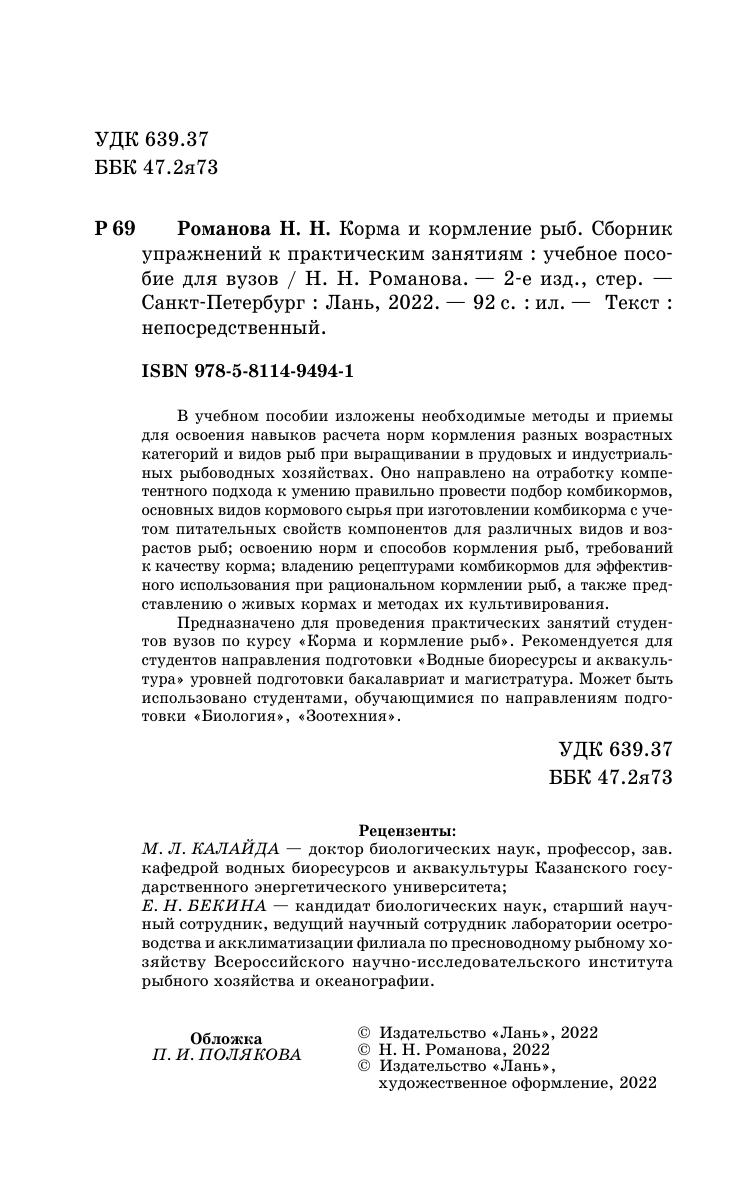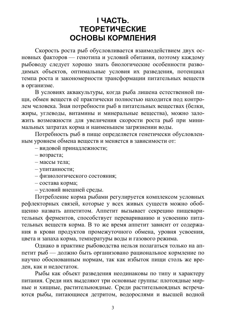 В учебном пособии изложены необходимые методы и приемы для освоения навыков расчета норм кормления разных возрастных категорий и видов рыб при выращивании в прудовых и индустриальных рыбоводных хозяйствах. Оно направлено на отработку компетентного подхода к умению правильно провести подбор комбикормов, основных видов кормового сырья при изготовлении комбикорма с учетом питательных свойств компонентов для различных видов и возрастов рыб; освоению норм и способов кормления рыб, требований к качеству корма; владению рецептурами комбикормов для эффективного использования при рациональном кормлении рыб, а также представлению о живых кормах и методах их культивирования.